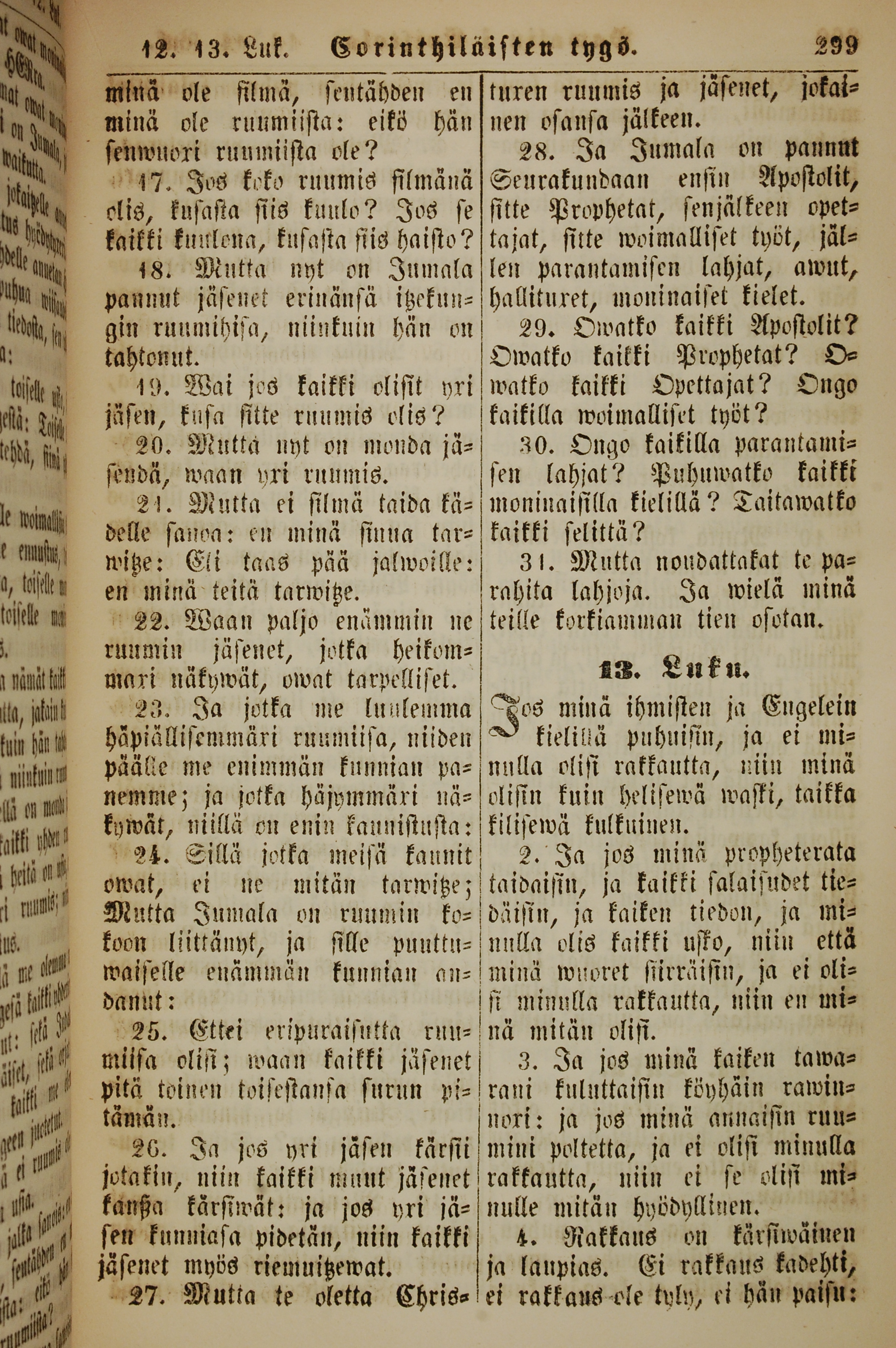 1861年新約全書 哥林多前書 12 章 17 節到 13 章 4 節