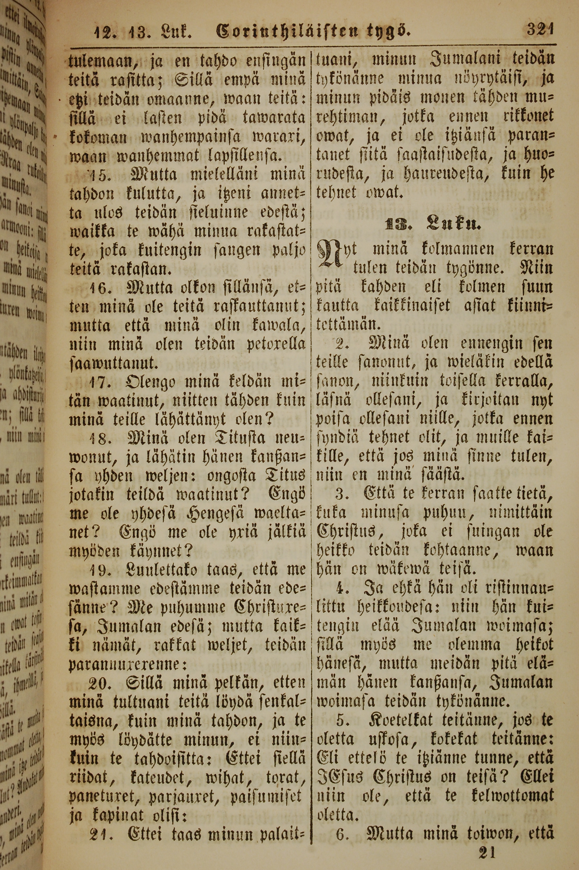 1861年新約全書 哥林多後書 12 章 15 節到 13 章 6 節