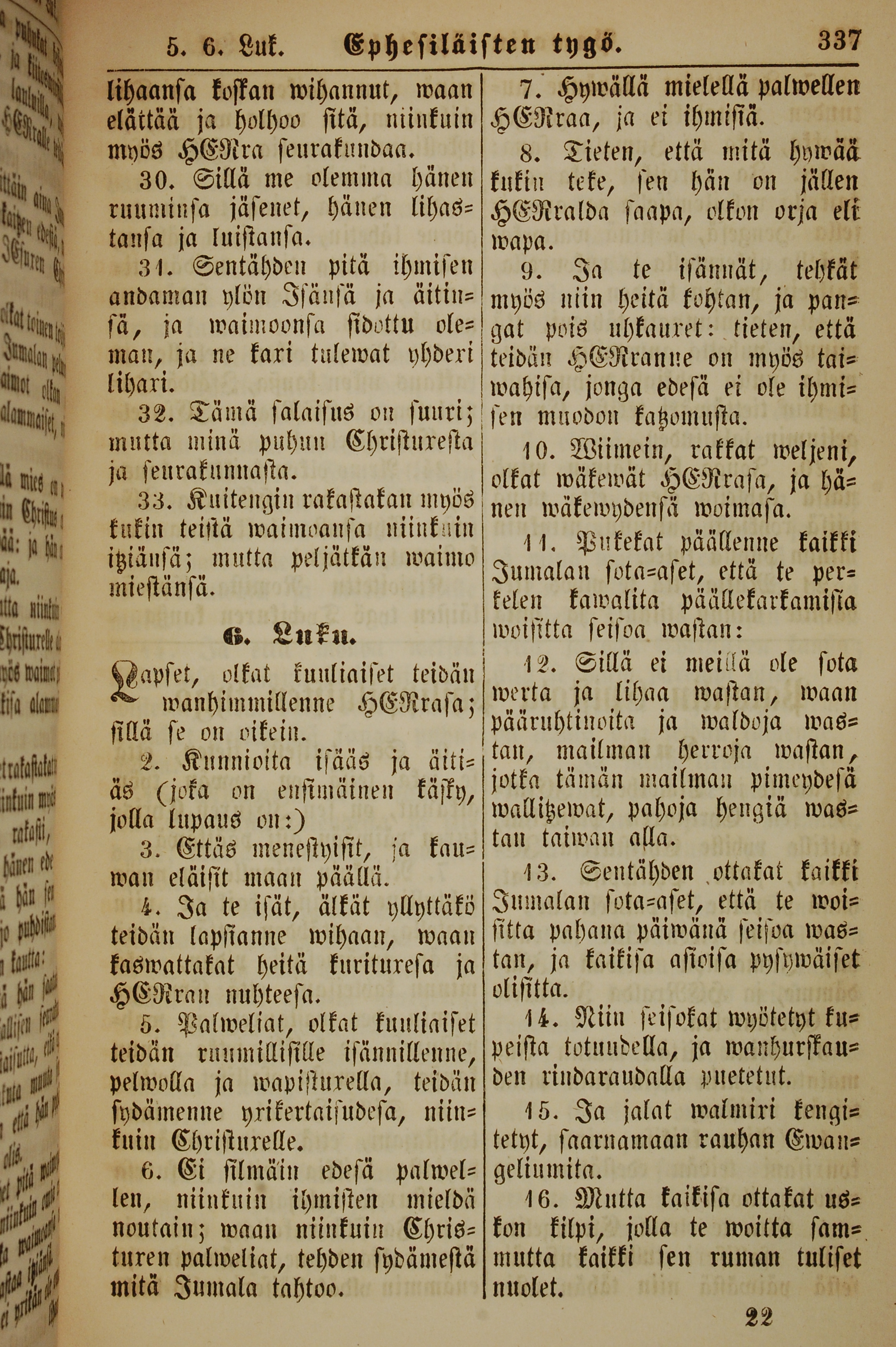 1861年新約全書 以弗所書 5 章 30 節到 6 章 16 節