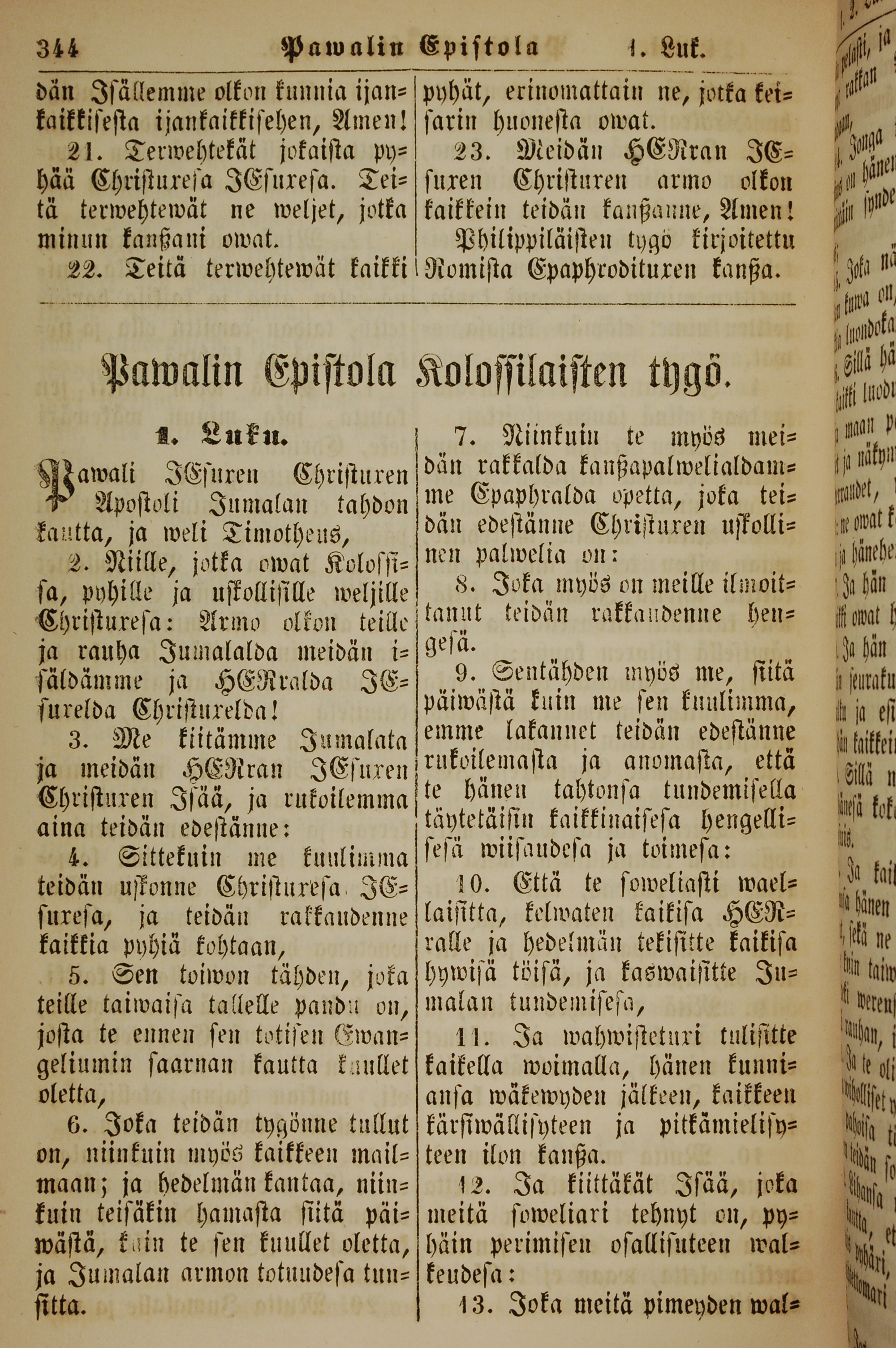 1861年新約全書 歌羅西書 1 章 1 節到 1 章 13 節