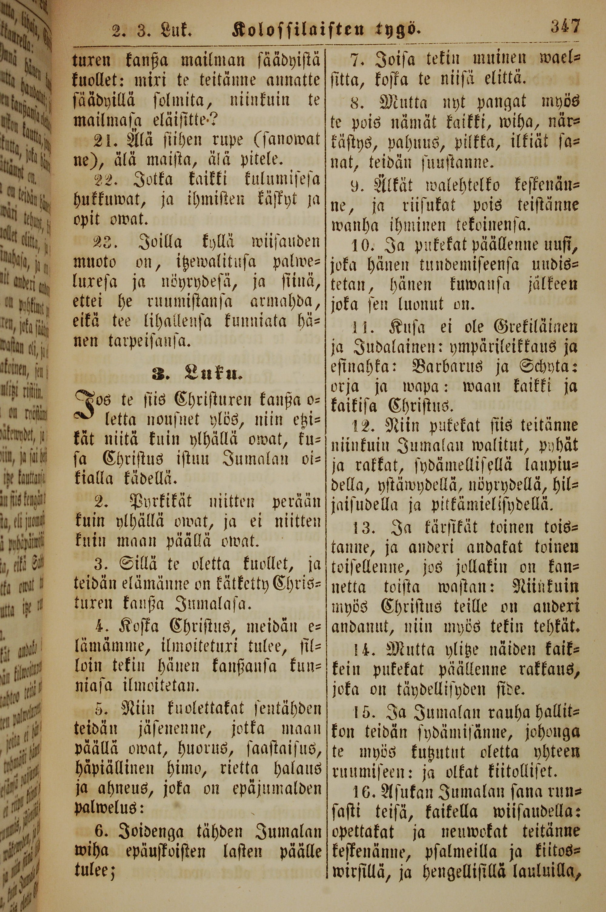 1861年新約全書 歌羅西書 2 章 21 節到 3 章 16 節