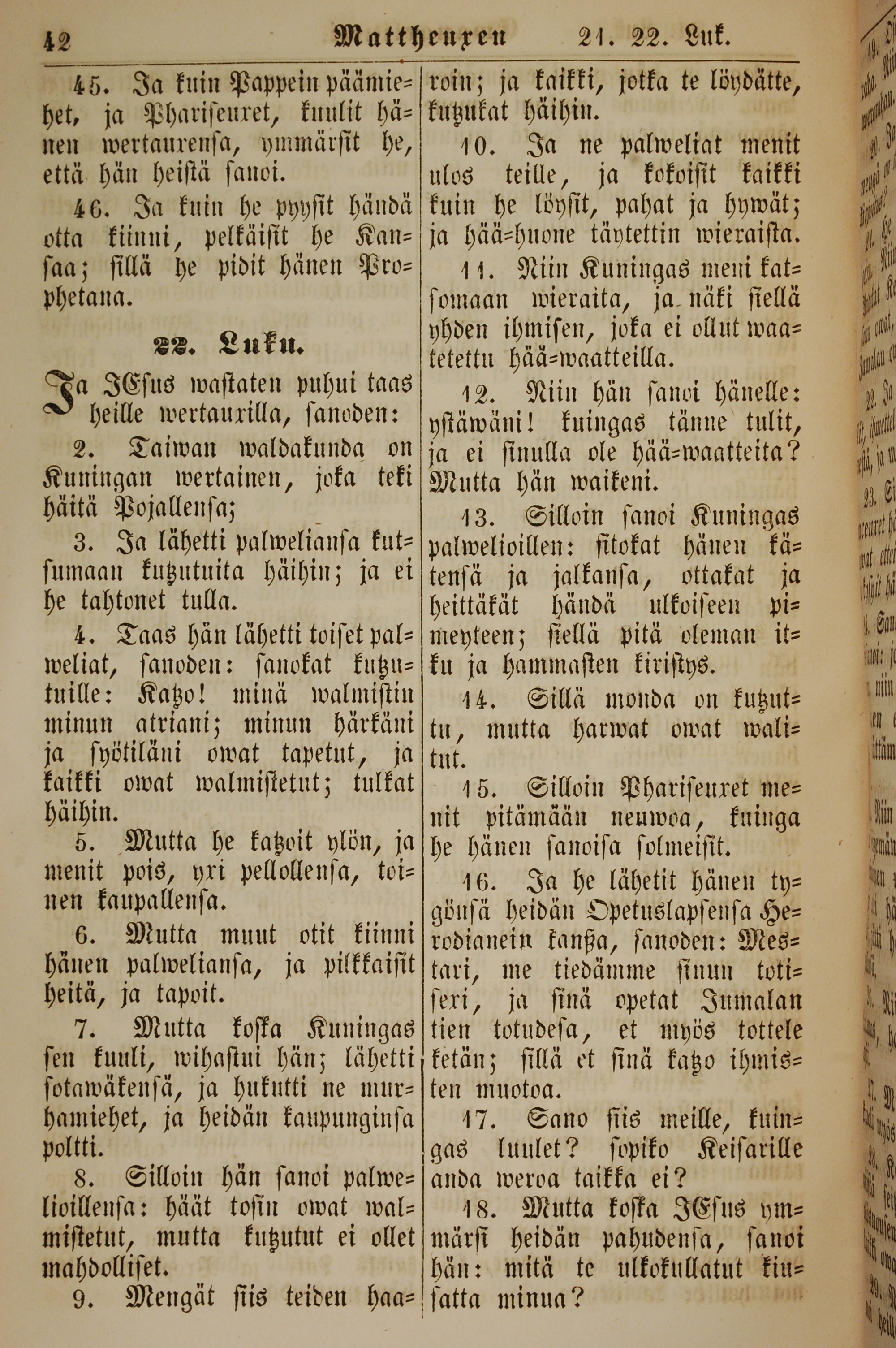 1861年新約全書 馬太福音 21 章 45 節到 22 章 18 節