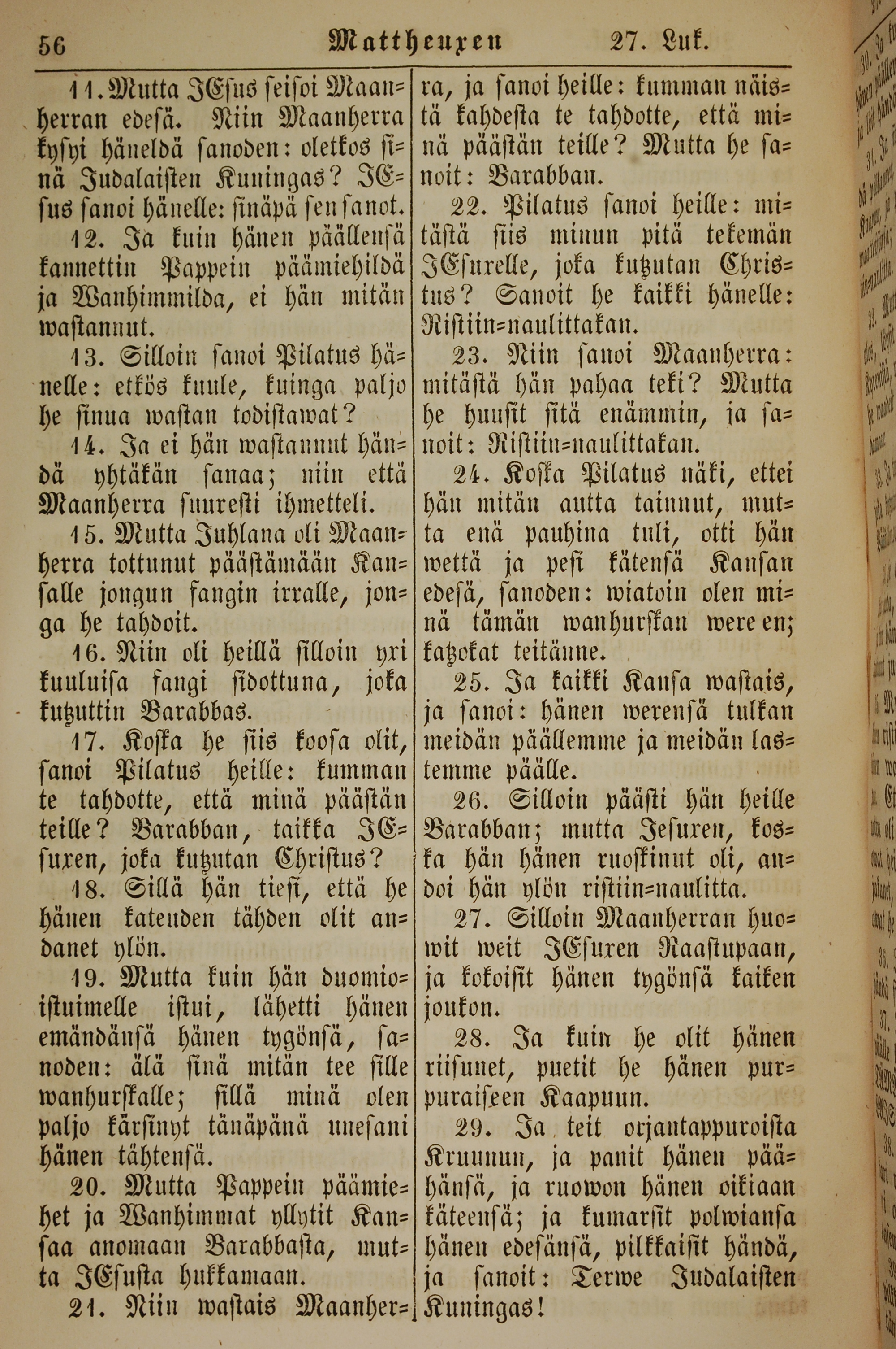 1861年新約全書 馬太福音 27 章 11 節到 27 章 29 節
