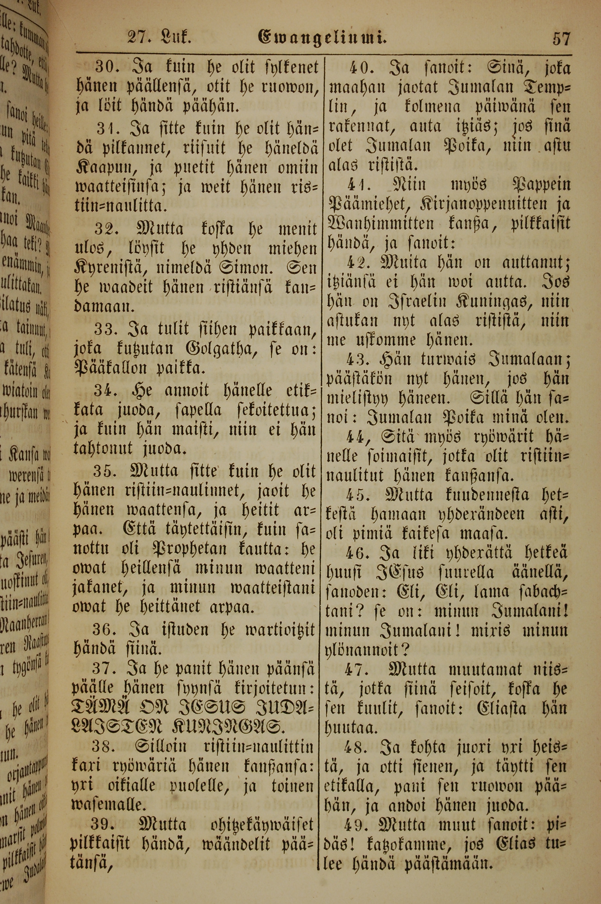 1861年新約全書 馬太福音 27 章 30 節到 27 章 49 節