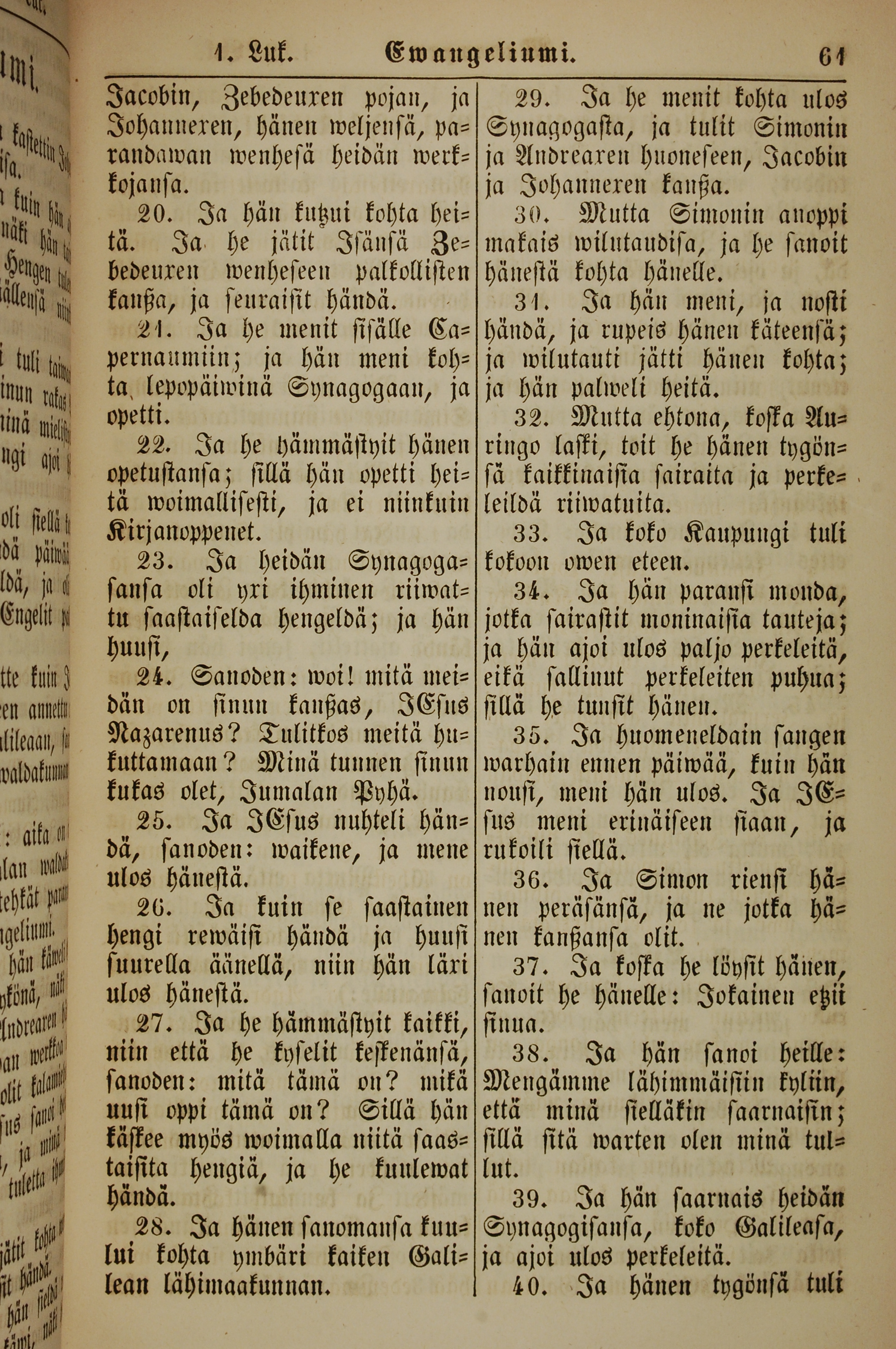 1861年新約全書 馬可福音 1 章 20 節到 1 章 40 節