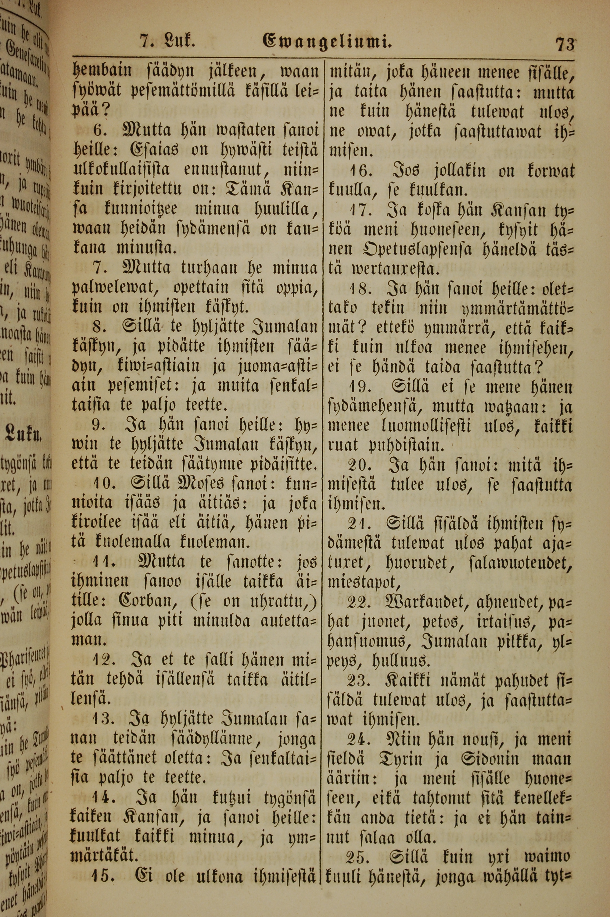 1861年新約全書 馬可福音 7 章 6 節到 7 章 25 節