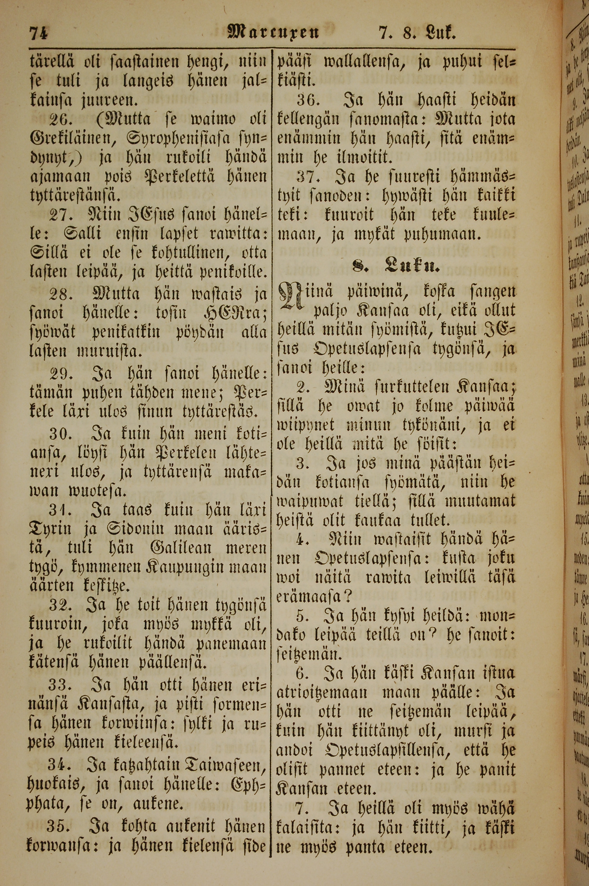 1861年新約全書 馬可福音 7 章 26 節到 8 章 7 節