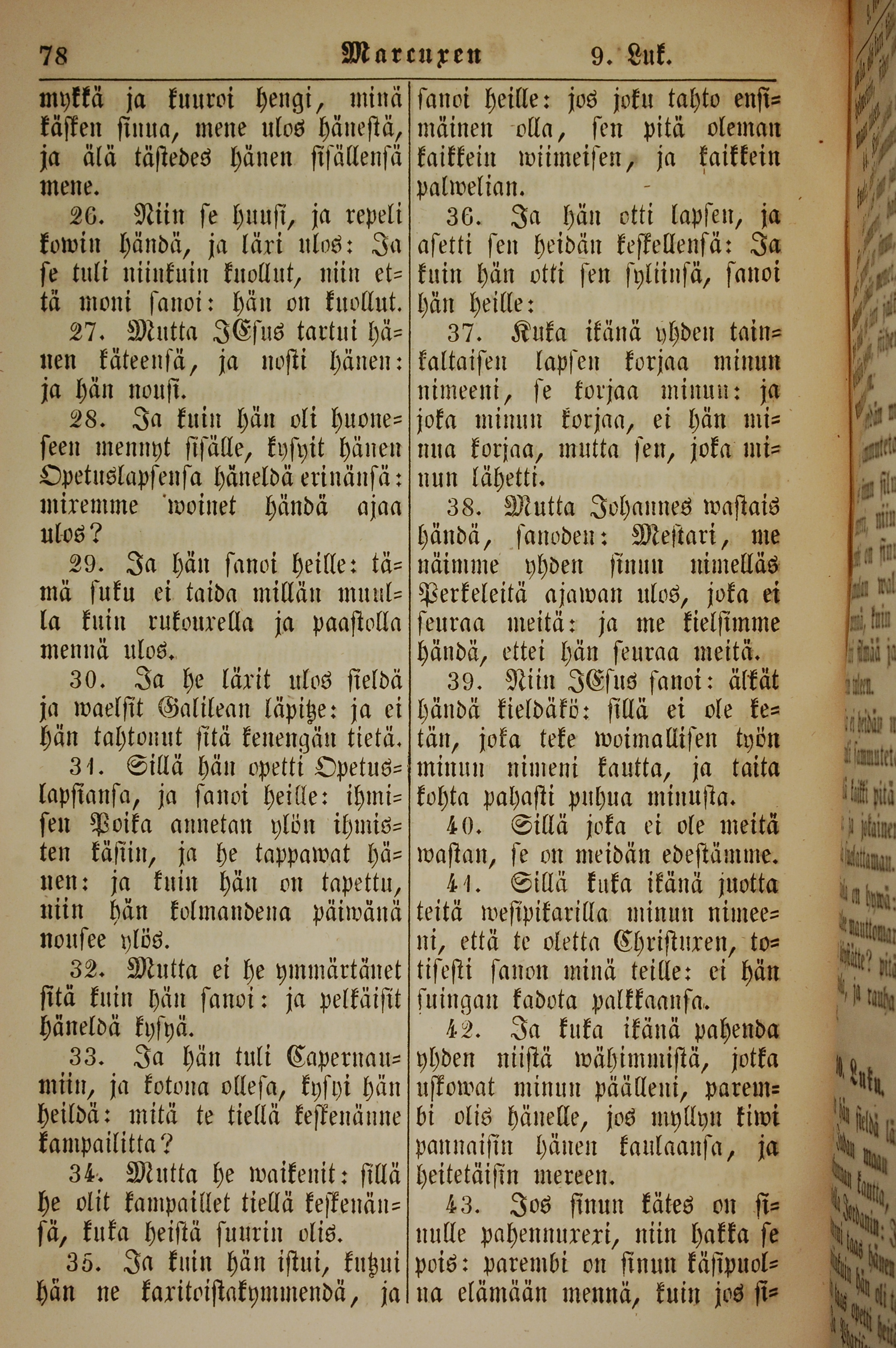 1861年新約全書 馬可福音 9 章 26 節到 9 章 43 節