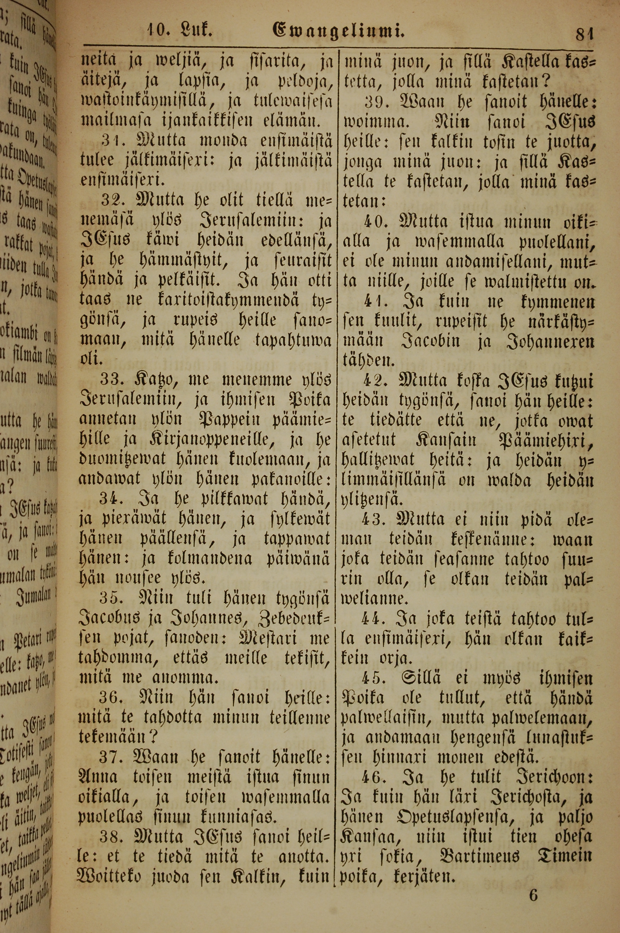 1861年新約全書 馬可福音 10 章 31 節到 10 章 46 節
