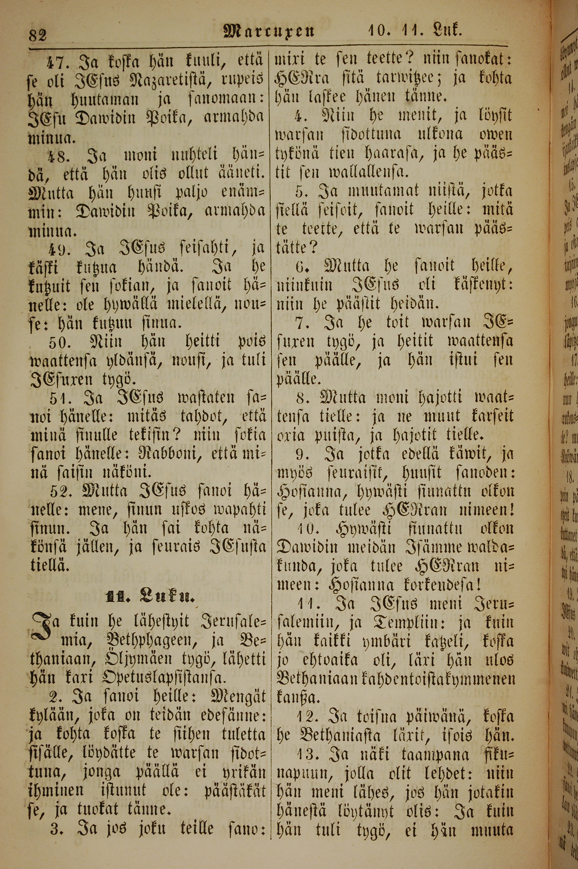 1861年新約全書 馬可福音 10 章 47 節到 11 章 13 節