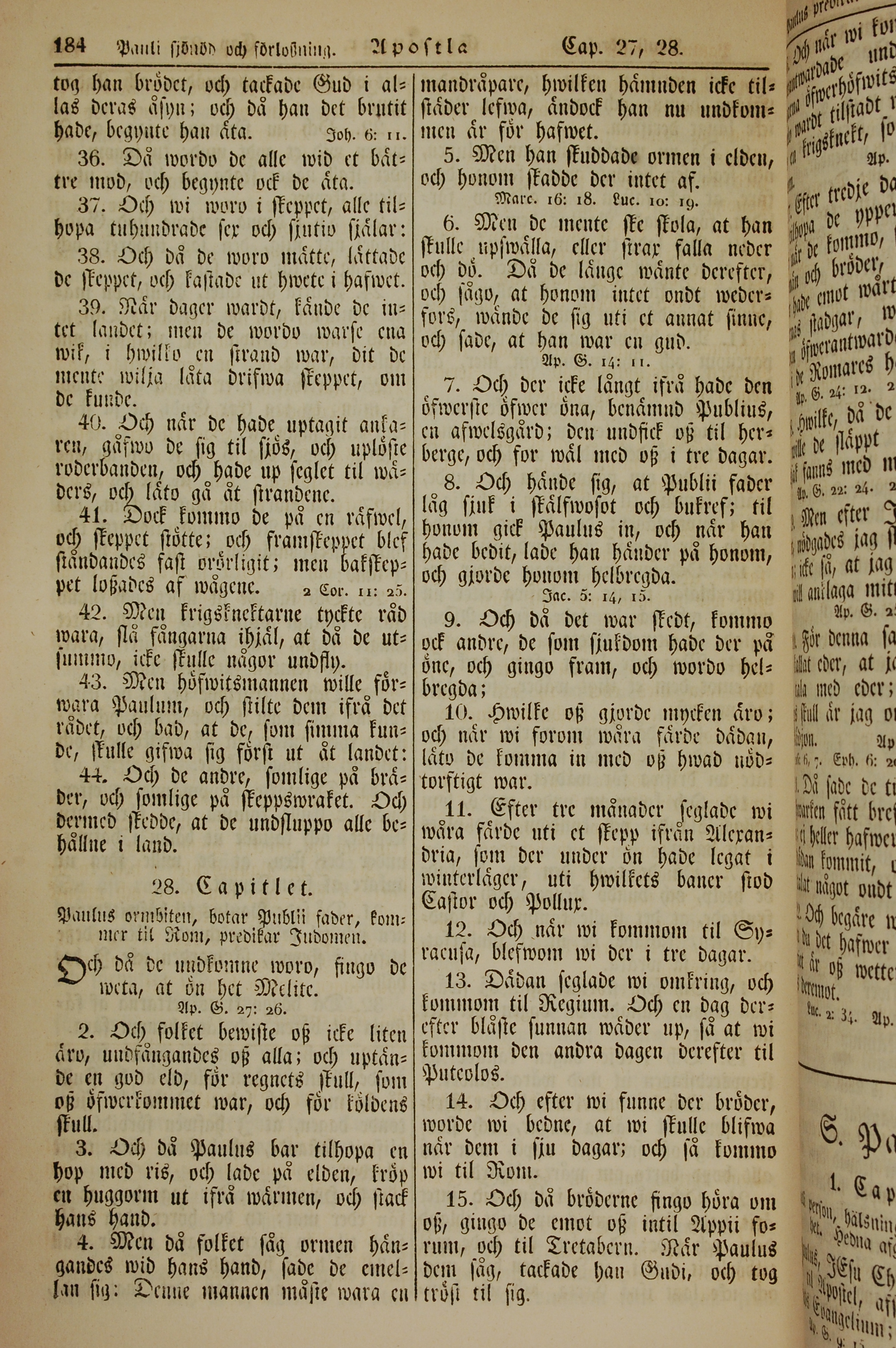 1862年新舊約全書 使徒行傳 27 章 36 節到 28 章 15 節