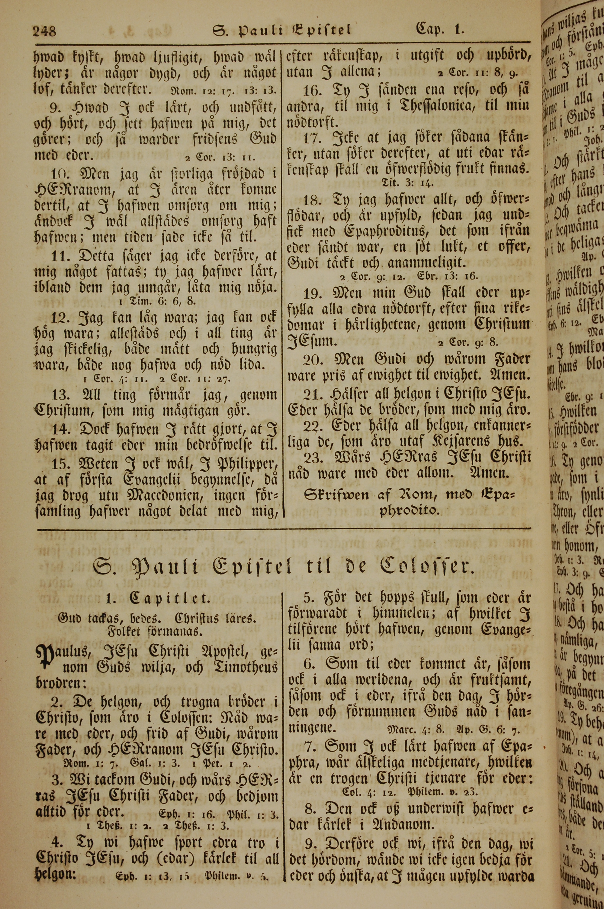 1862年新舊約全書 歌羅西書 1 章 1 節到 1 章 9 節