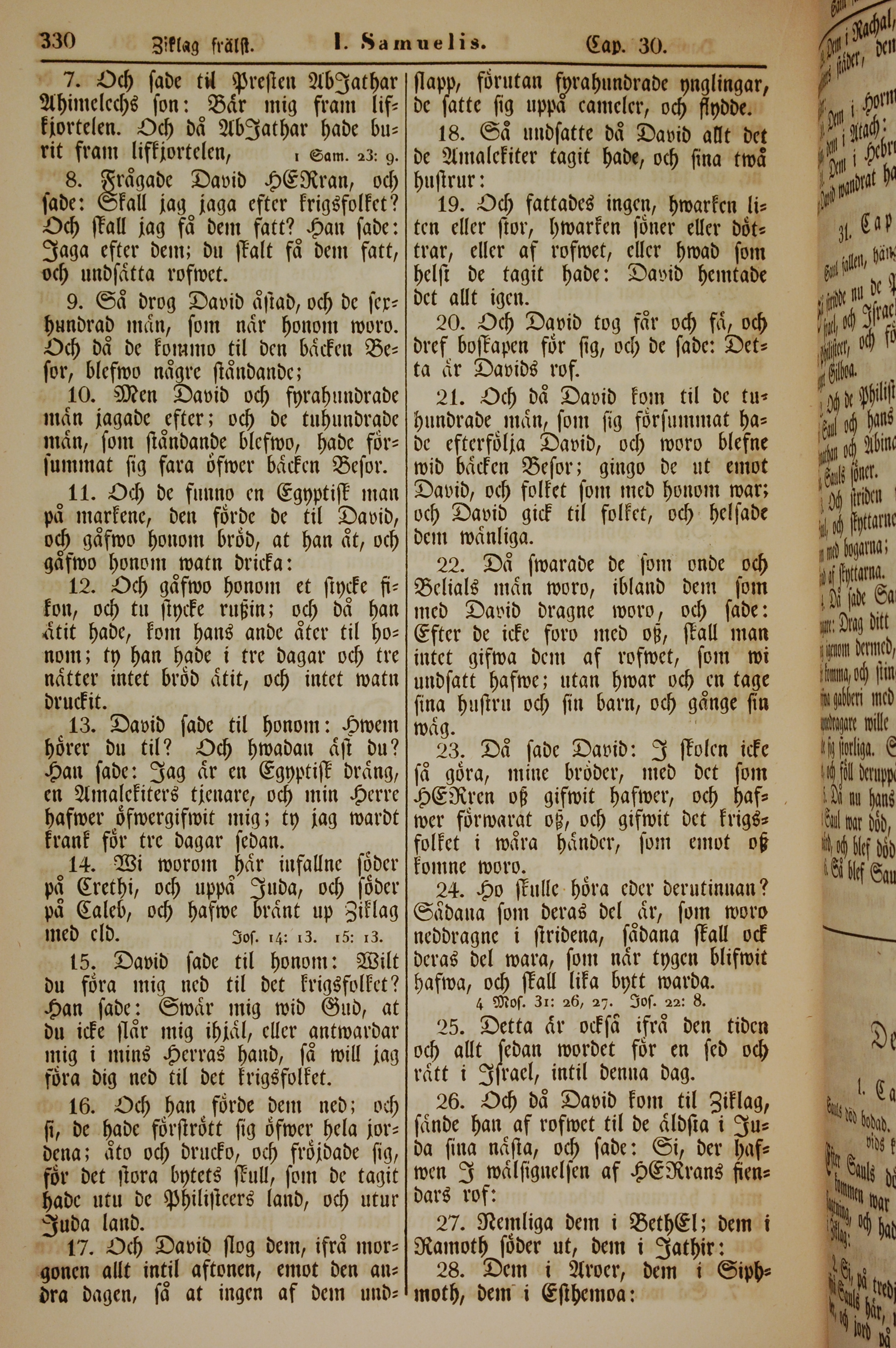 1862年新舊約全書 撒母耳記上 30 章 7 節到 30 章 28 節
