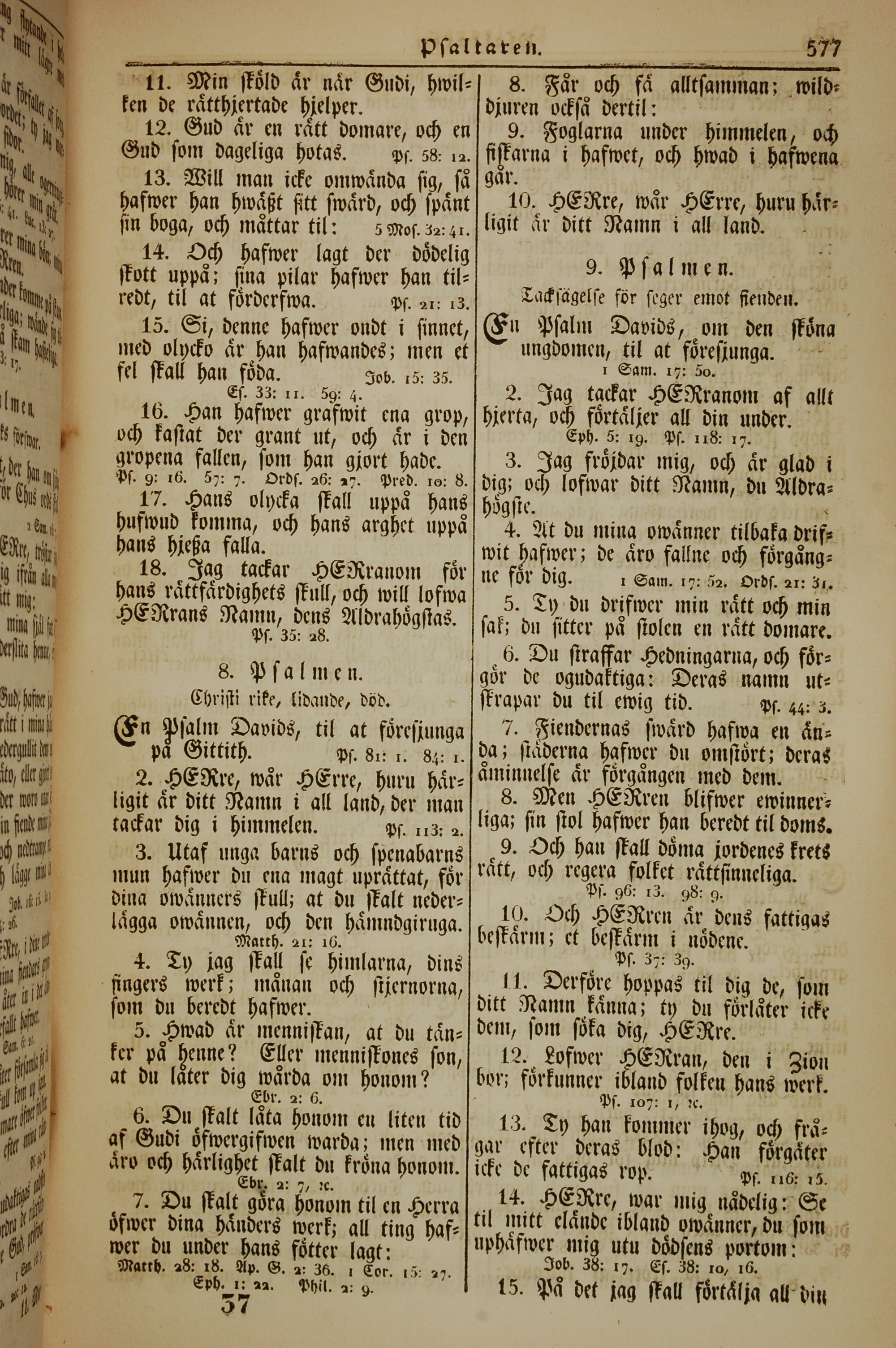1862年新舊約全書 詩篇 7 章 11 節到 9 章 15 節