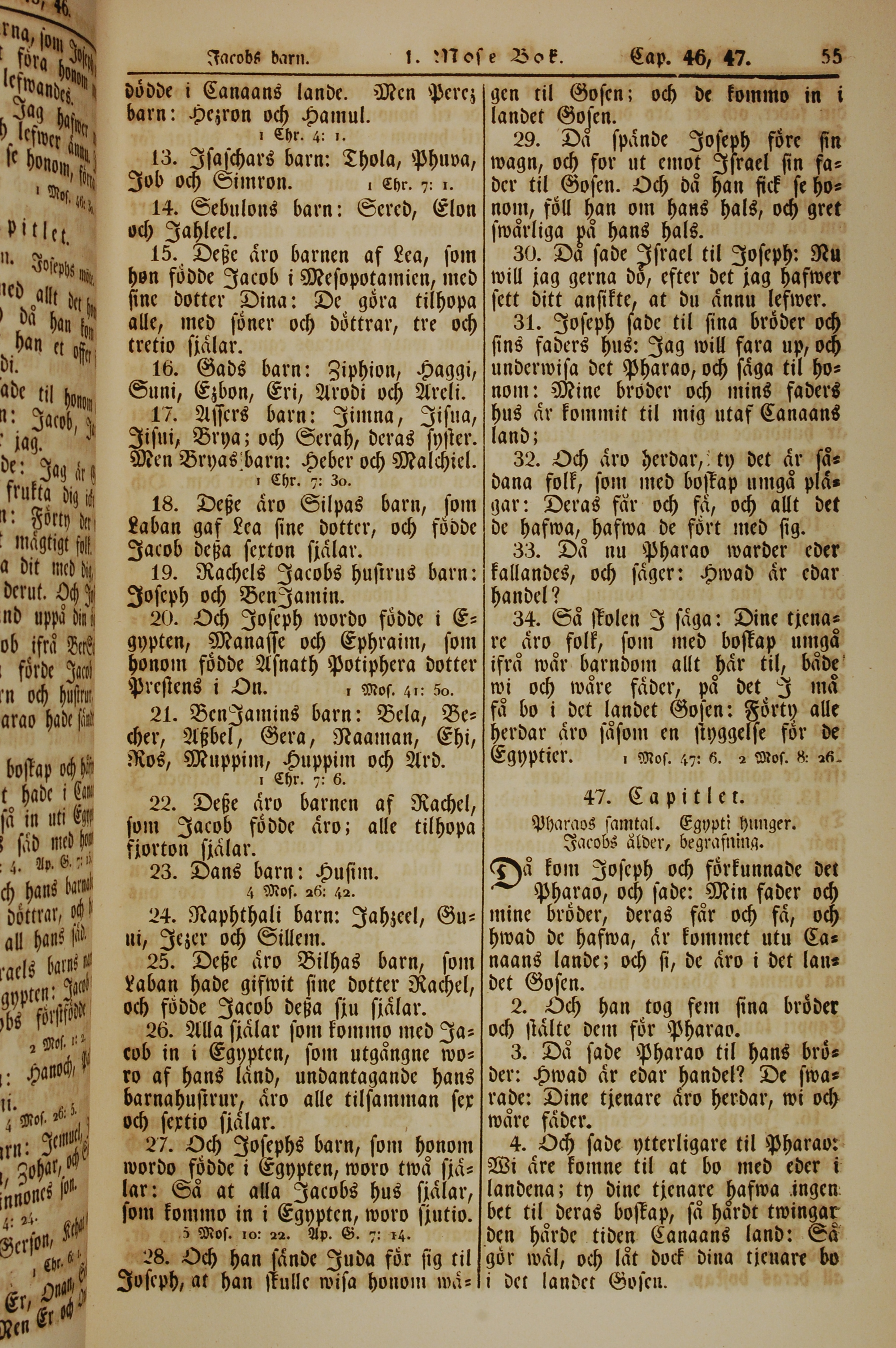 1862年新舊約全書 創世記 46 章 13 節到 47 章 4 節