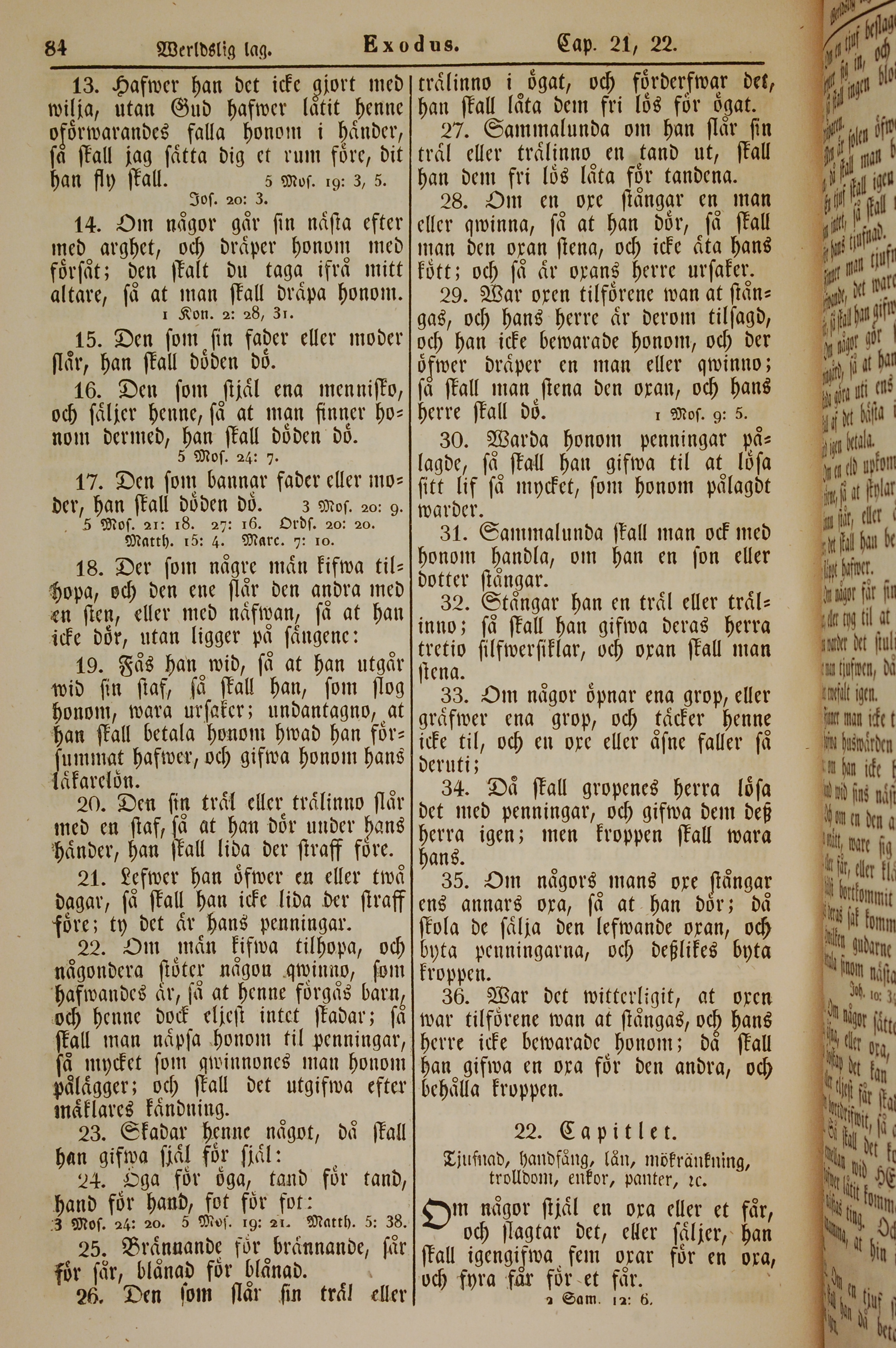 1862年新舊約全書 出埃及記 21 章 13 節到 22 章 1 節
