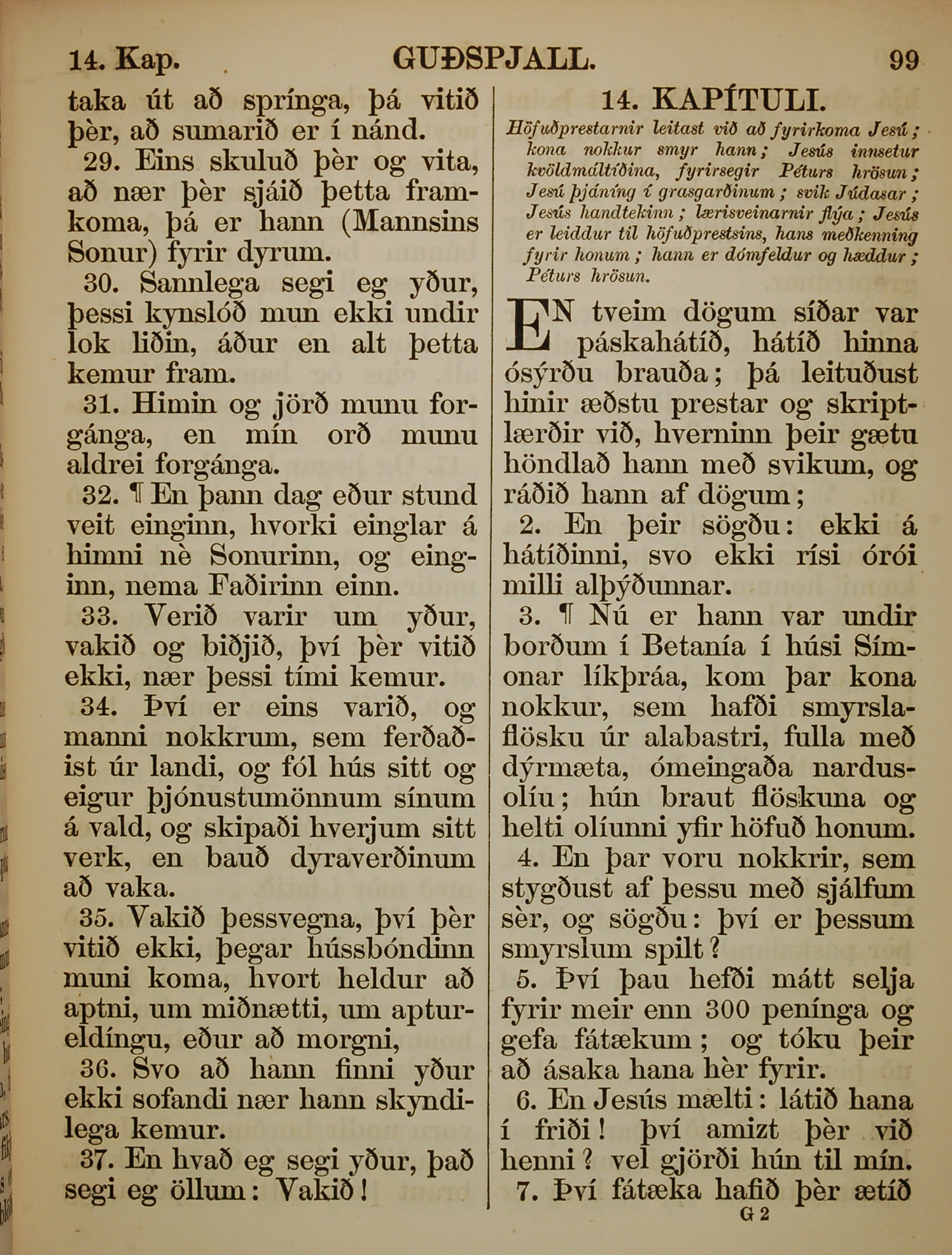 1863年冰島語新約全書 馬可福音 13 章 28 節到 14 章 7 節