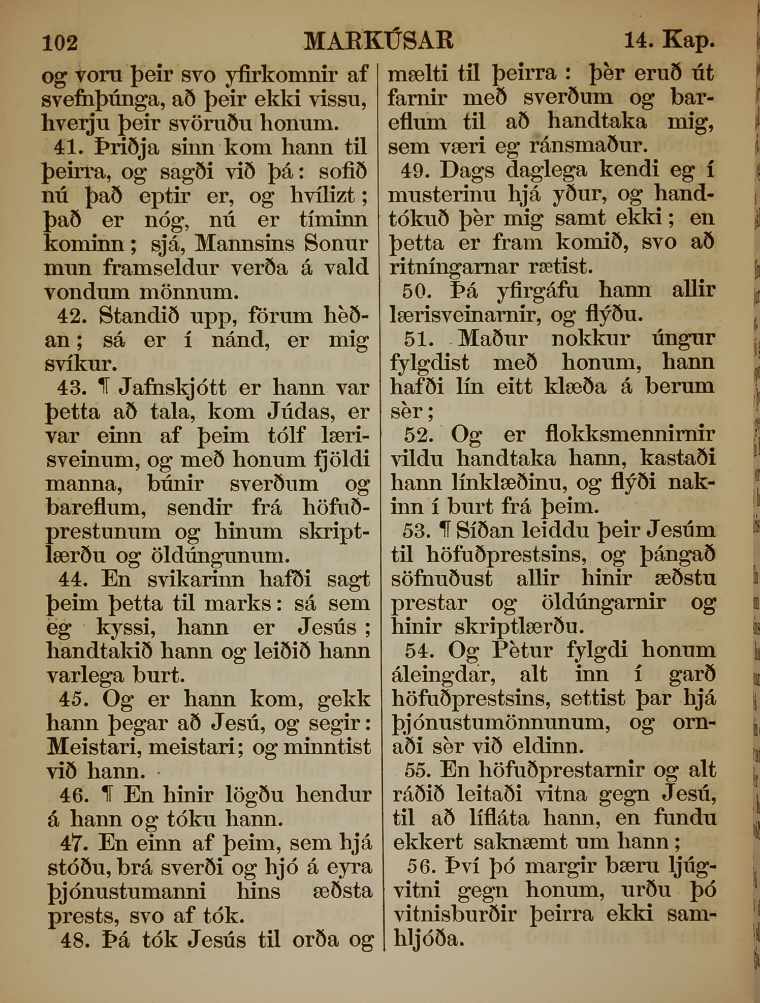 1863年冰島語新約全書 馬可福音 14 章 41 節到 14 章 56 節