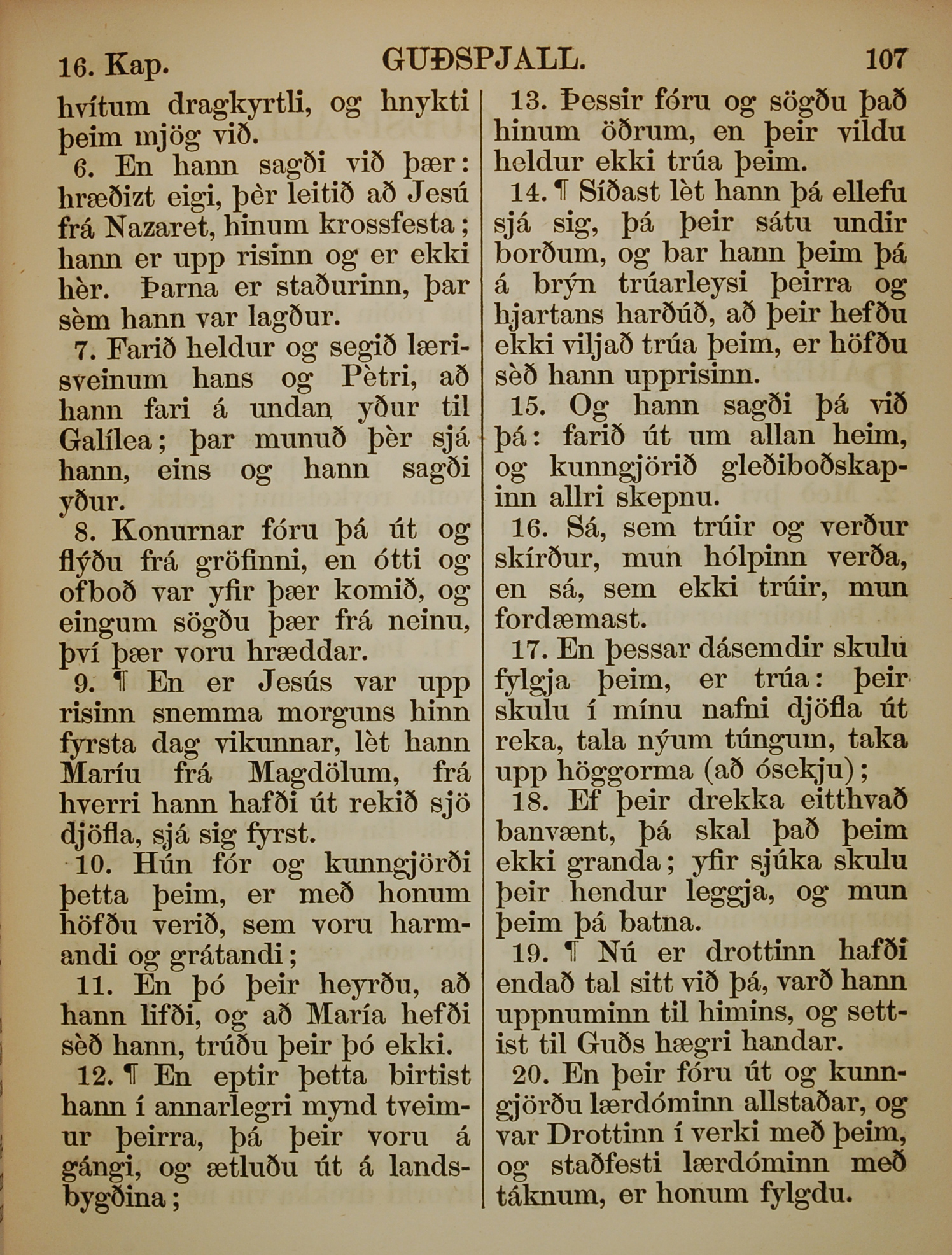 1863年冰島語新約全書 馬可福音 16 章 6 節到 16 章 20 節