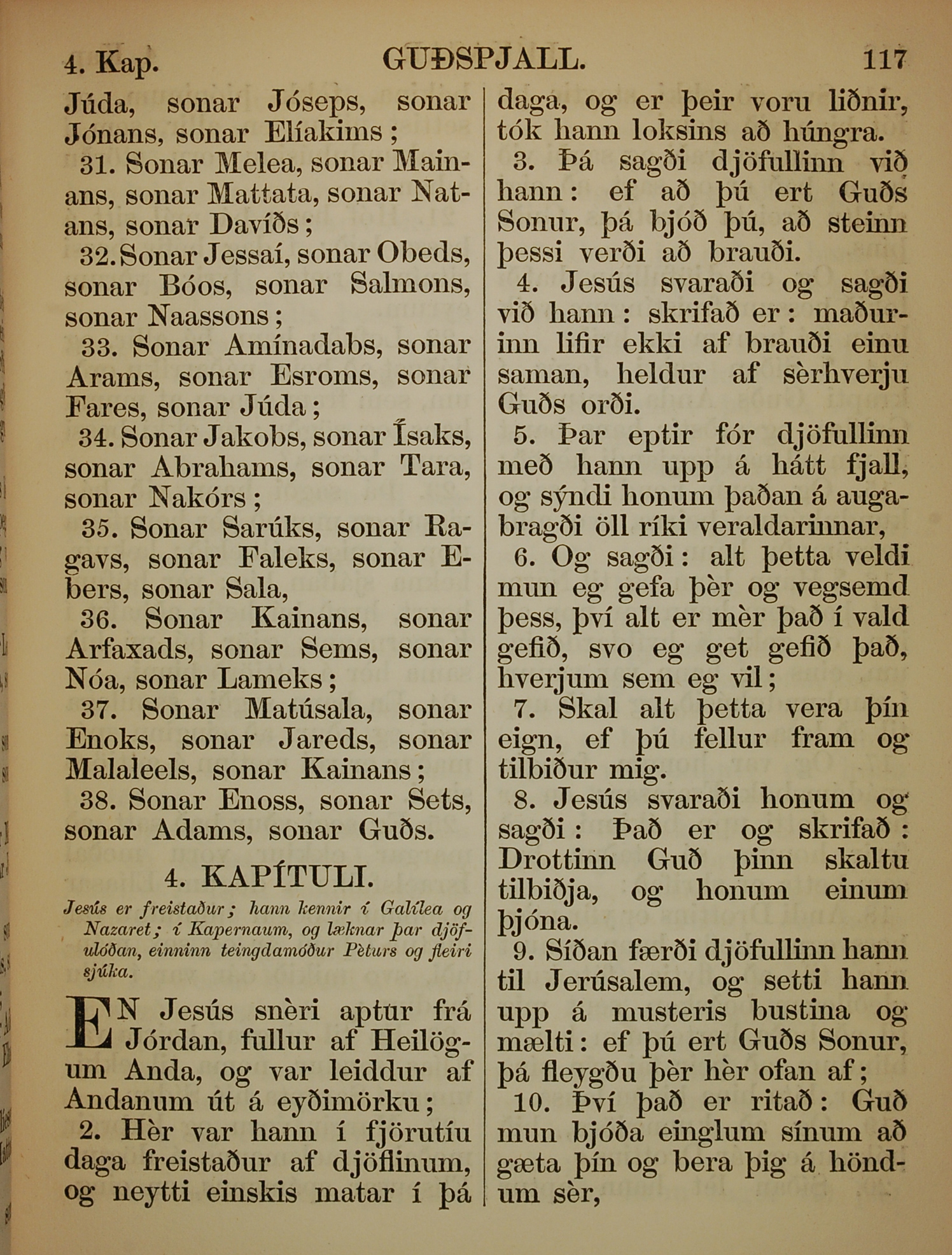 1863年冰島語新約全書 路加福音 3 章 31 節到 4 章 10 節