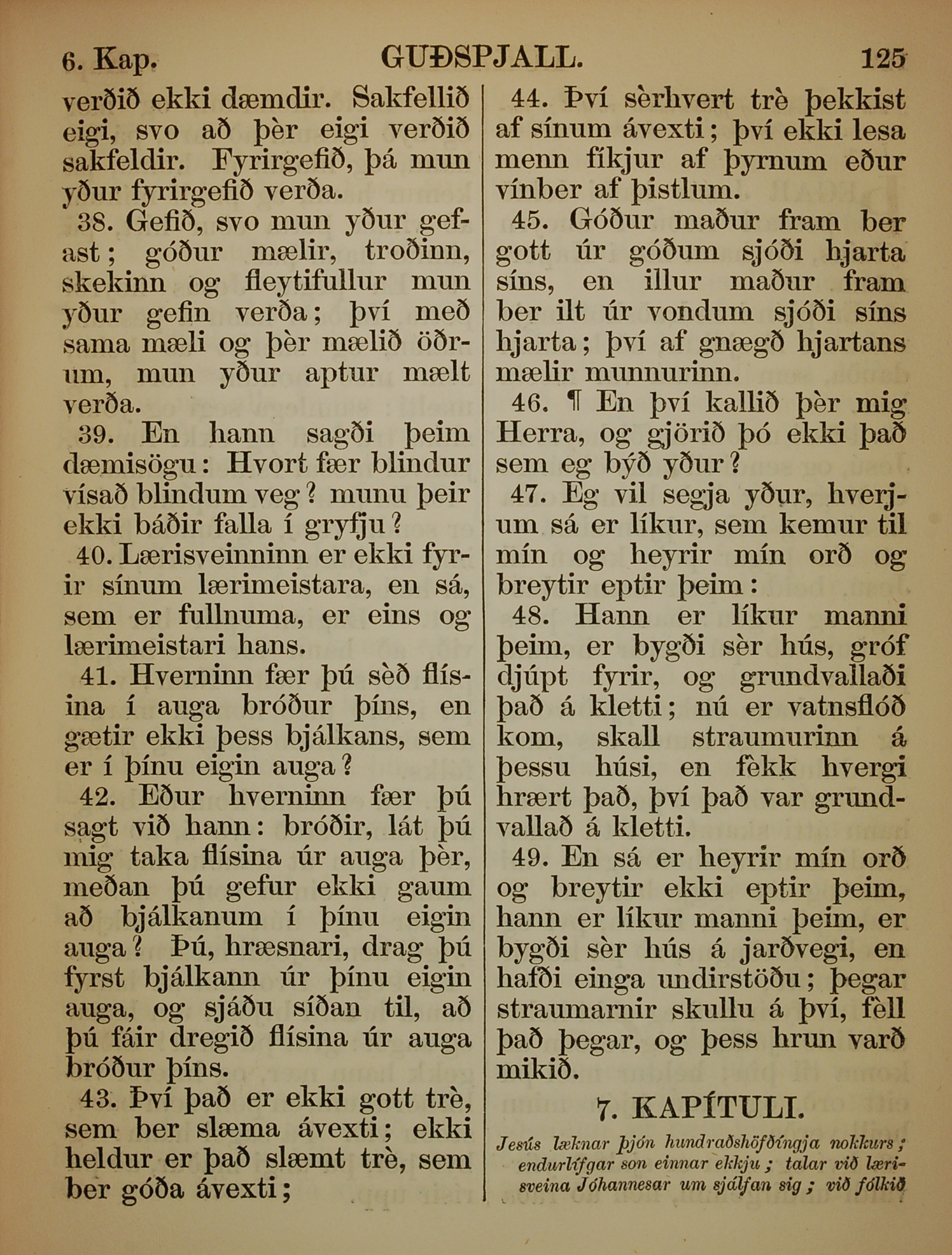 1863年冰島語新約全書 路加福音 6 章 38 節到 6 章 49 節