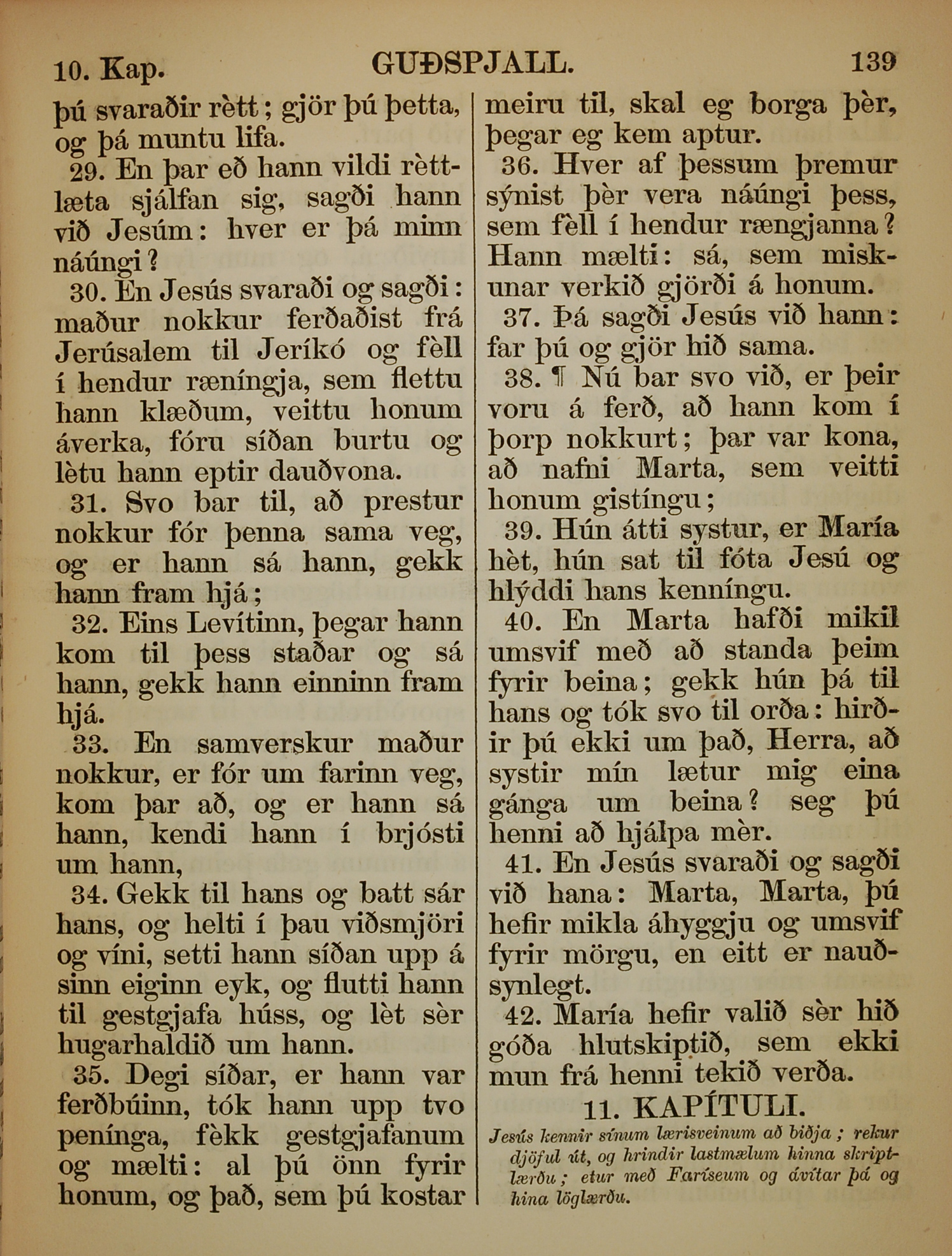 1863年冰島語新約全書 路加福音 10 章 29 節到 10 章 42 節