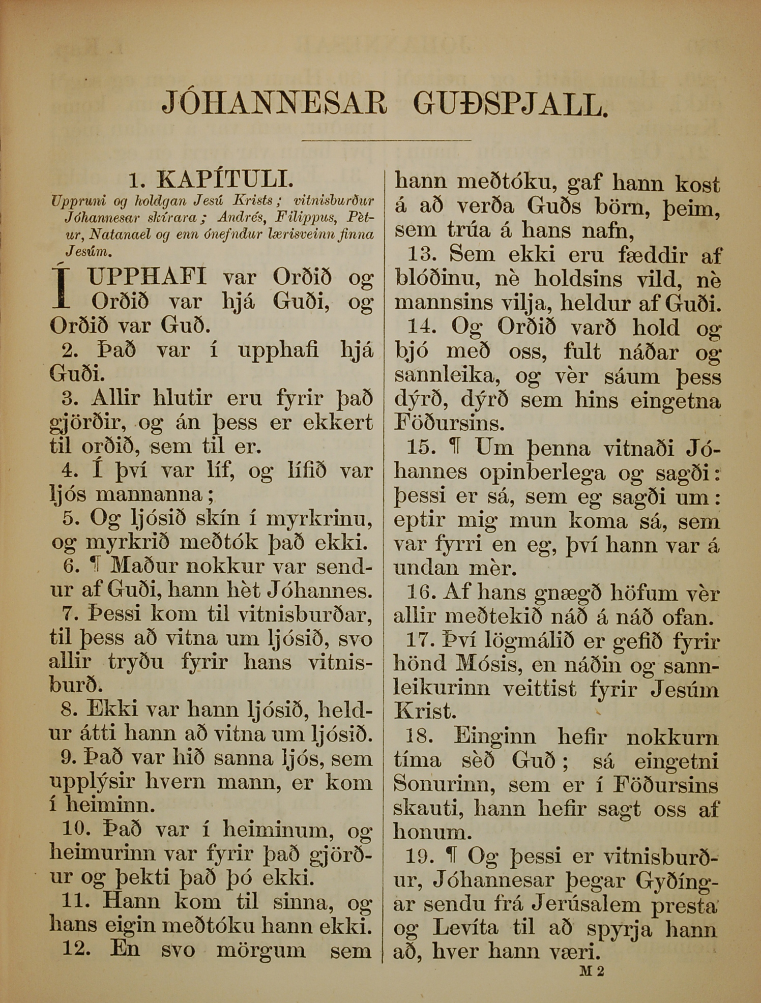 1863年冰島語新約全書 約翰福音 1 章 1 節到 1 章 19 節
