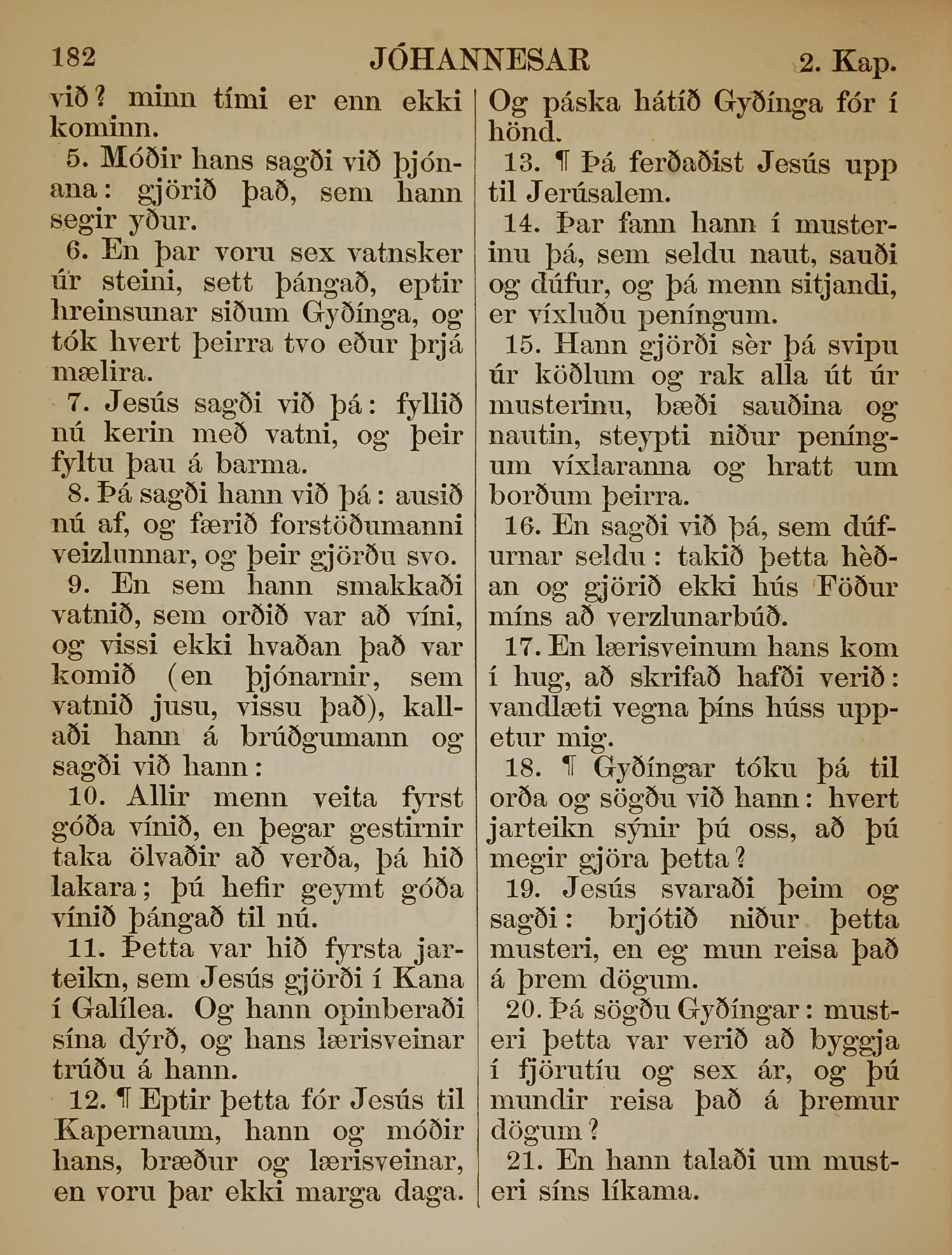 1863年冰島語新約全書 約翰福音 2 章 5 節到 2 章 21 節