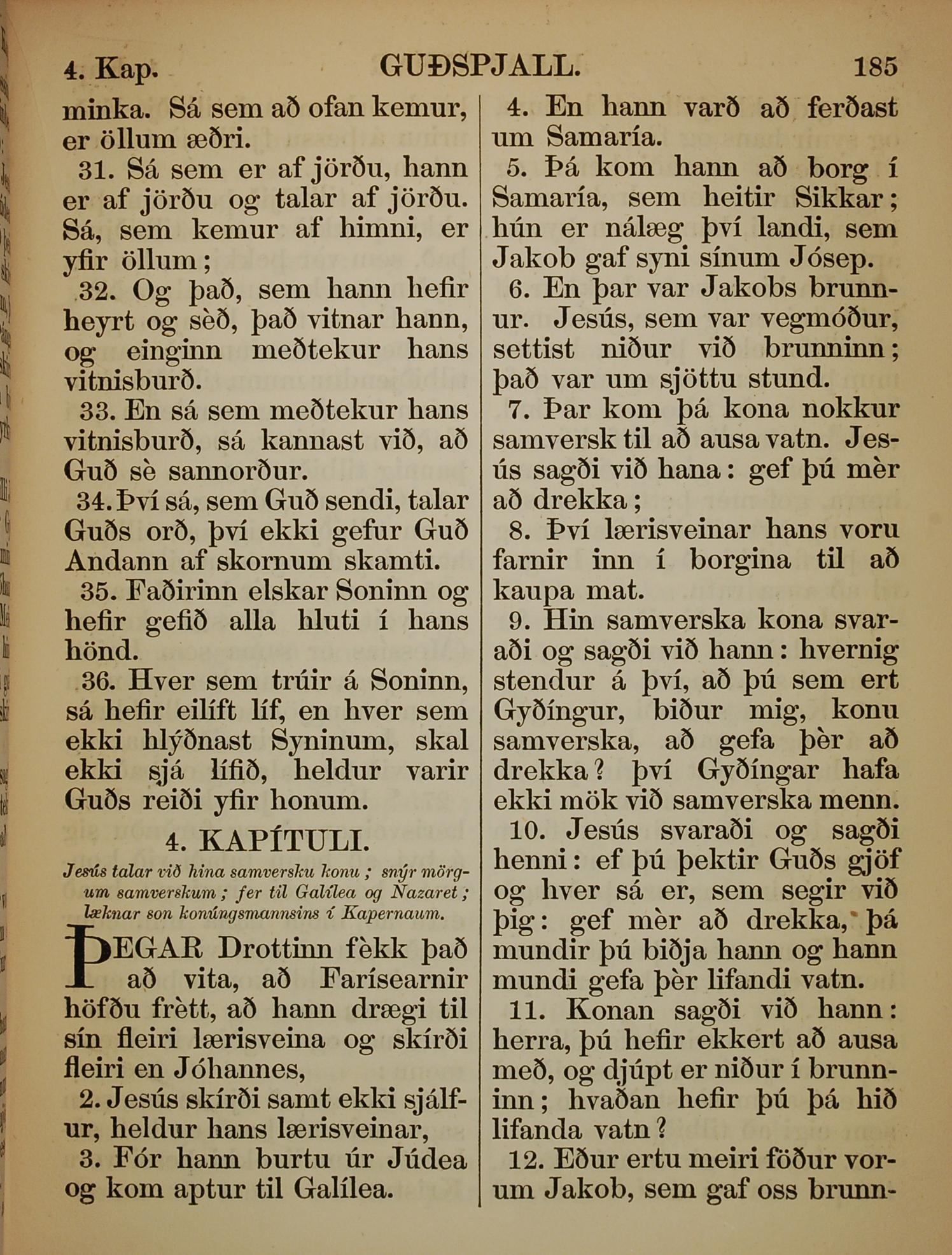 1863年冰島語新約全書 約翰福音 3 章 31 節到 4 章 12 節