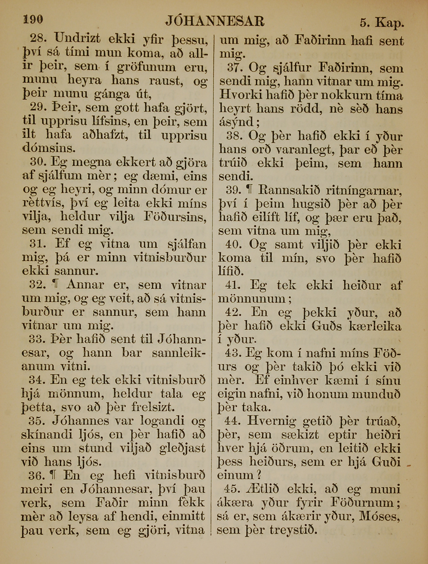 1863年冰島語新約全書 約翰福音 5 章 28 節到 5 章 45 節