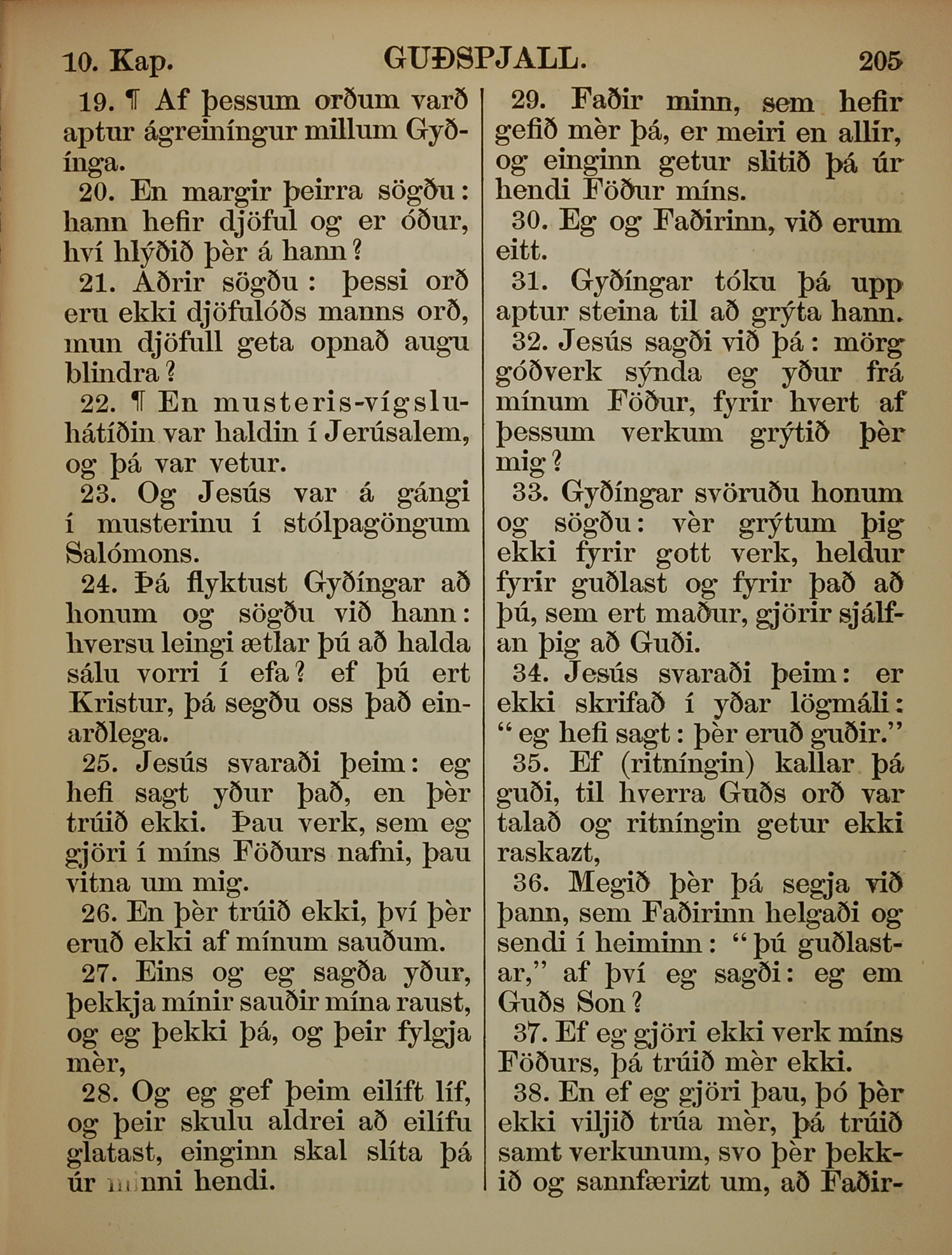 1863年冰島語新約全書 約翰福音 10 章 19 節到 10 章 38 節