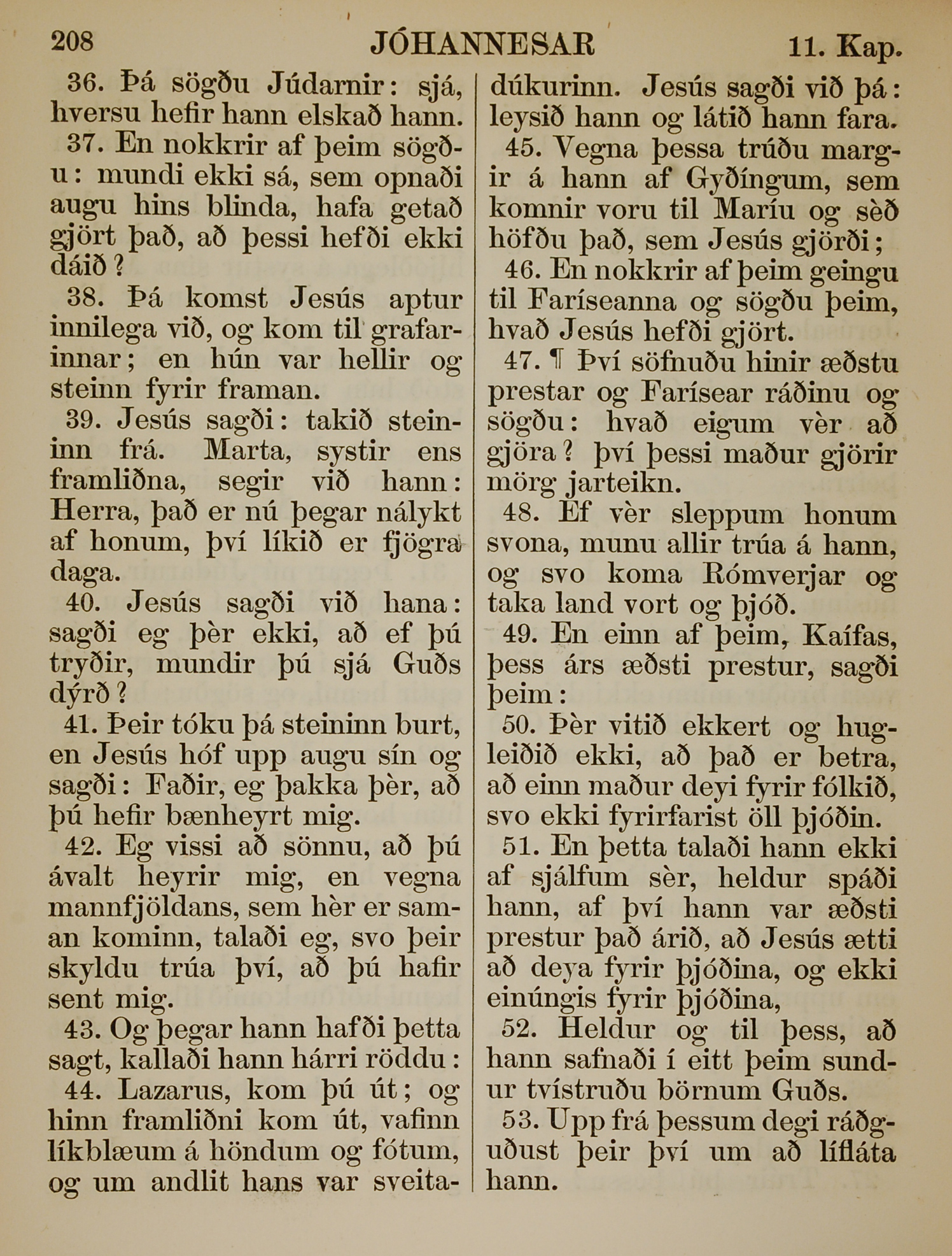 1863年冰島語新約全書 約翰福音 11 章 36 節到 11 章 53 節
