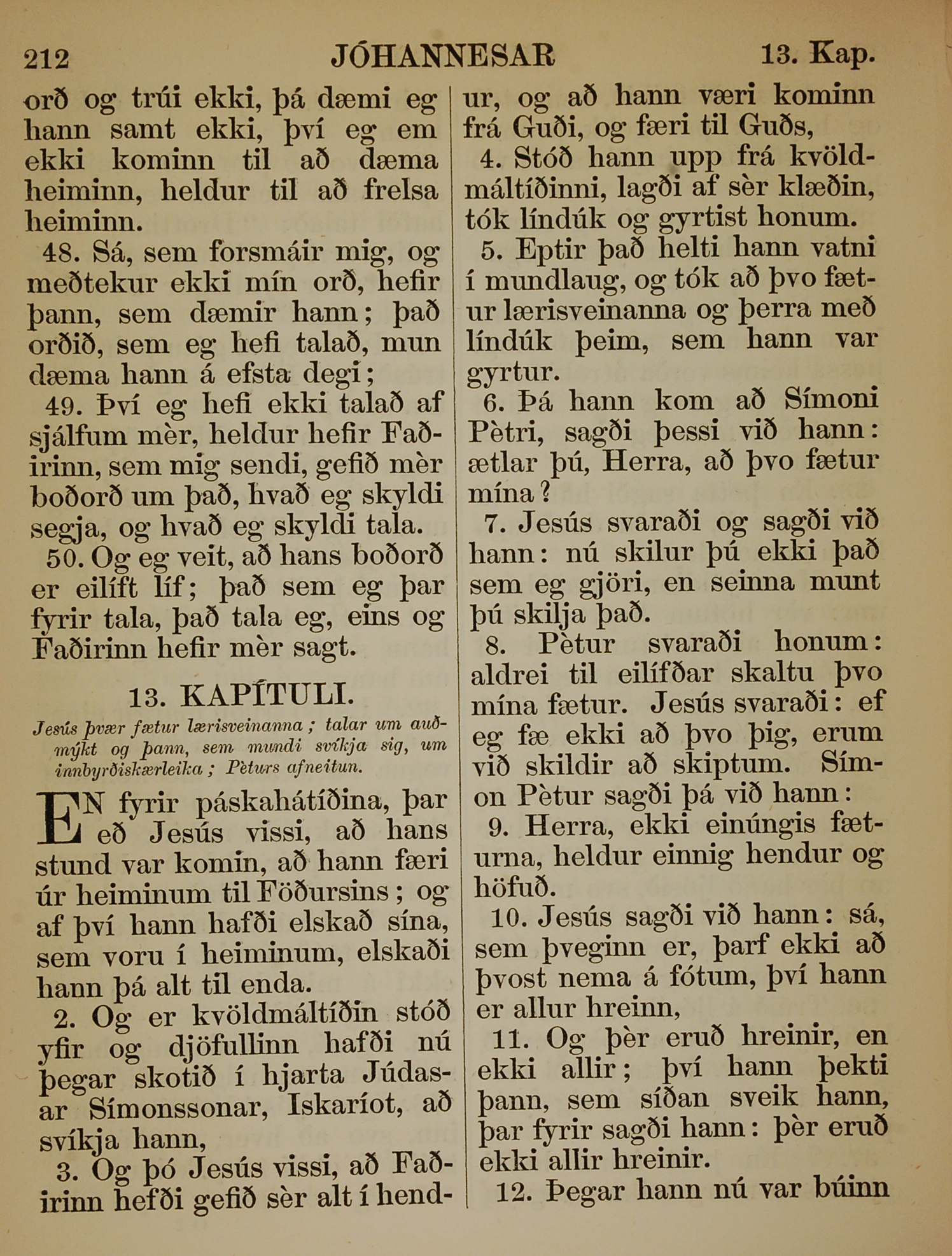 1863年冰島語新約全書 約翰福音 12 章 48 節到 13 章 12 節