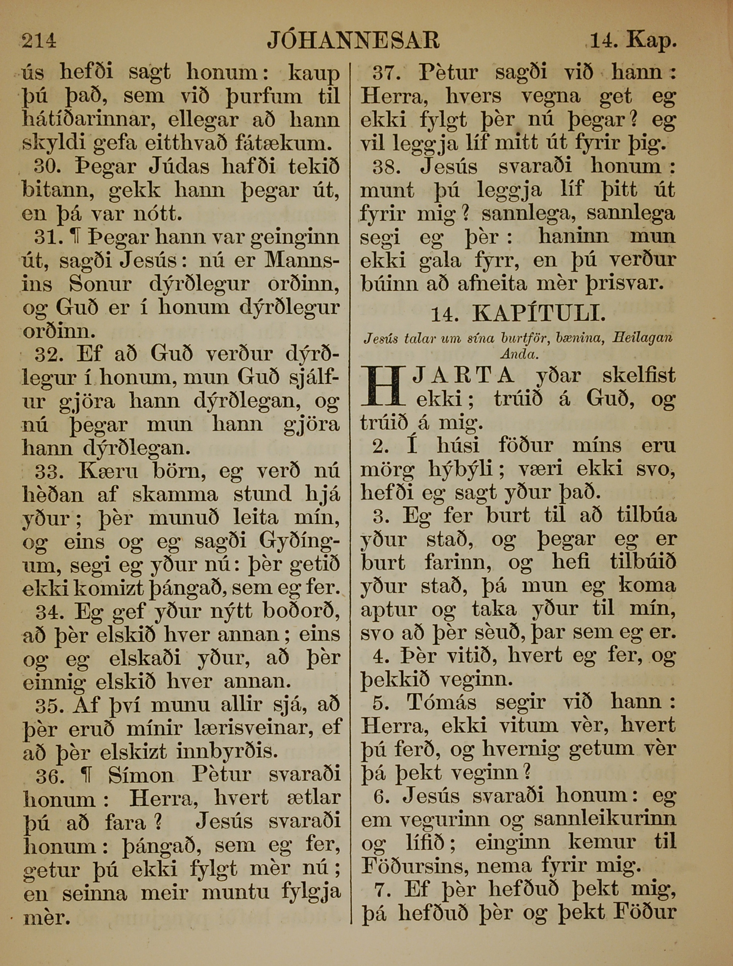 1863年冰島語新約全書 約翰福音 13 章 30 節到 14 章 7 節