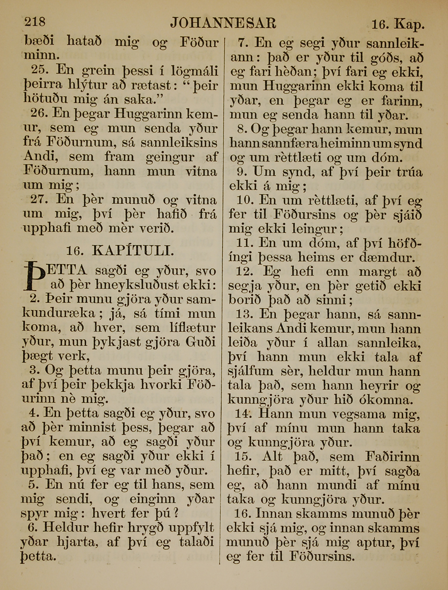 1863年冰島語新約全書 約翰福音 15 章 25 節到 16 章 16 節