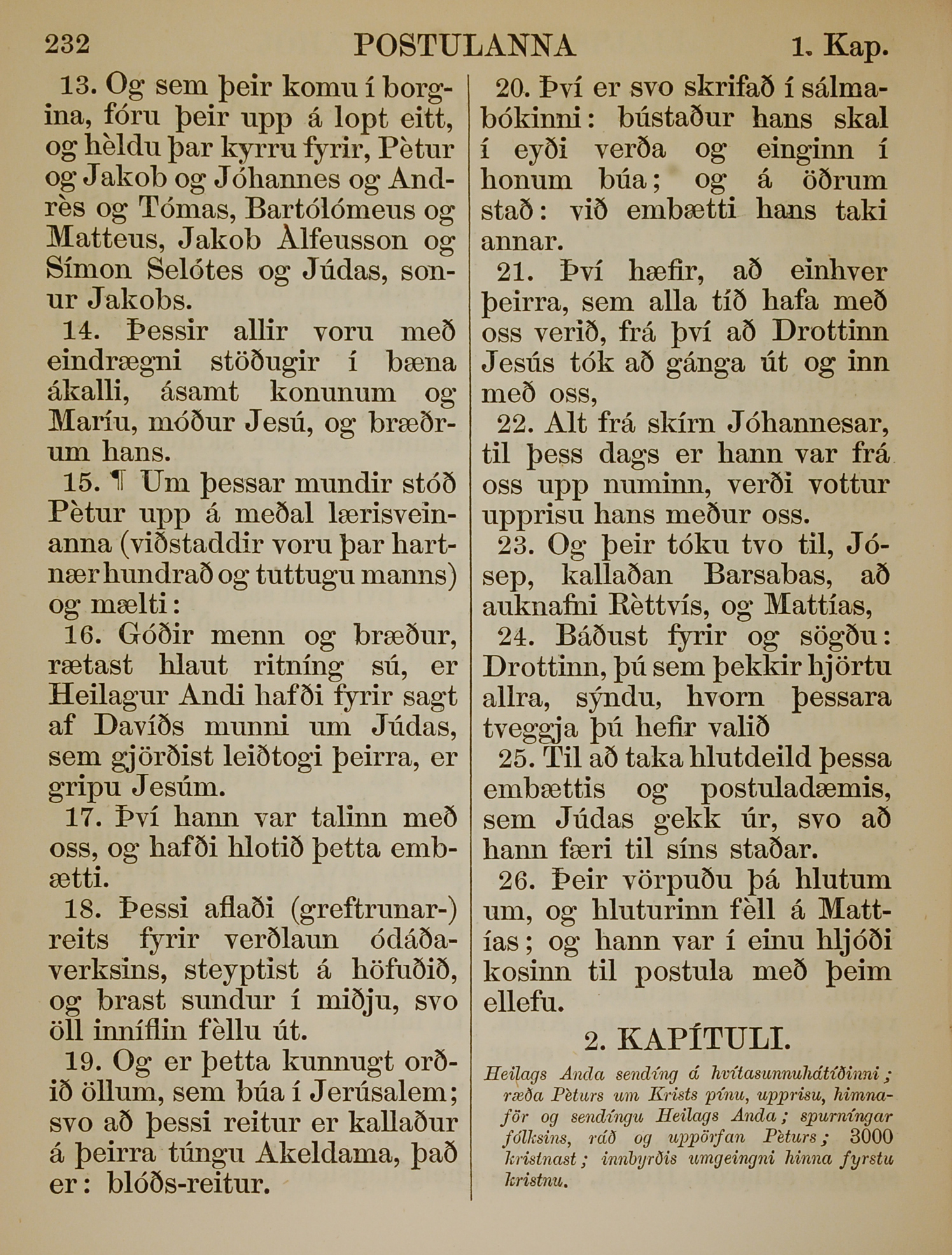 1863年冰島語新約全書 使徒行傳 1 章 13 節到 1 章 26 節