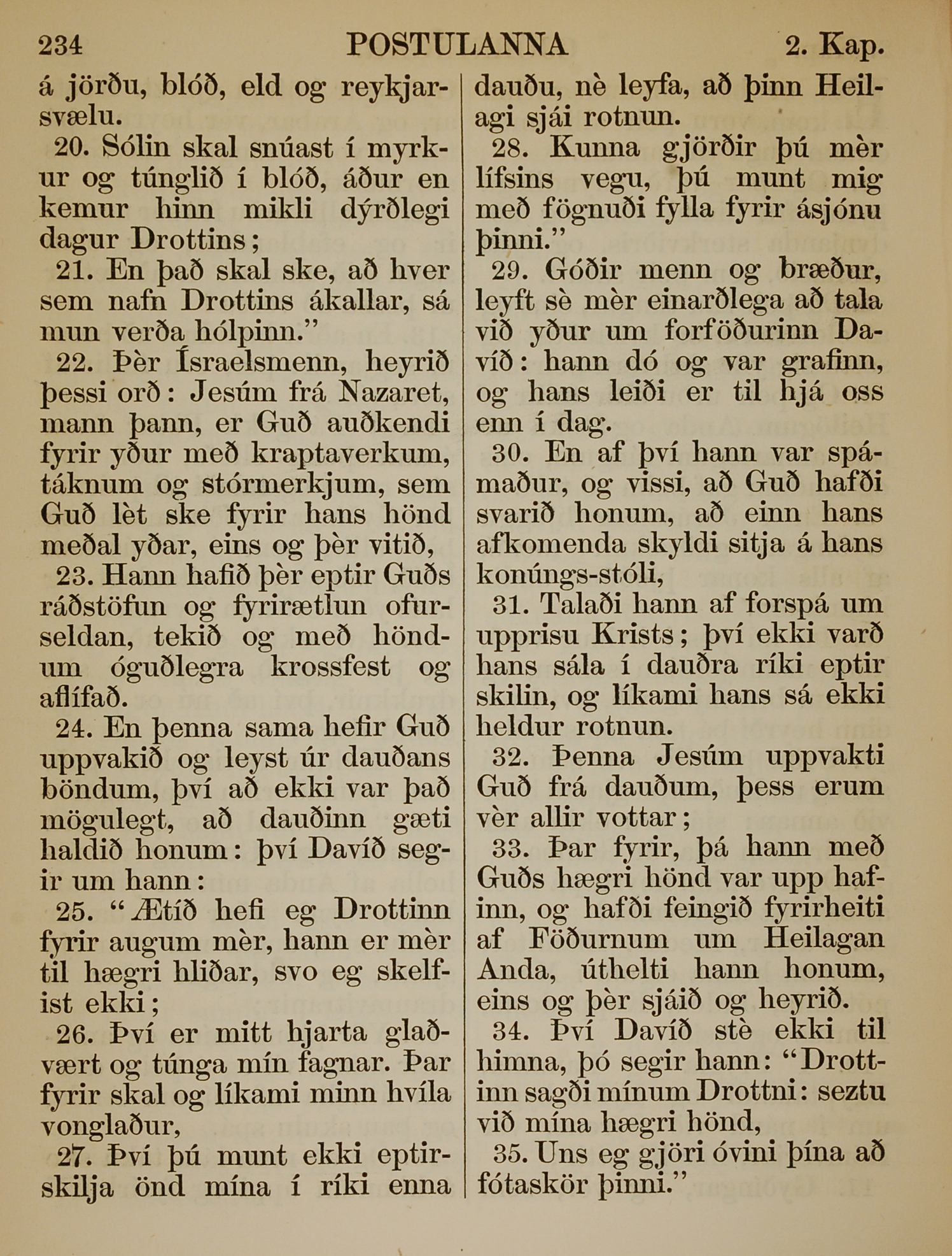1863年冰島語新約全書 使徒行傳 2 章 20 節到 2 章 35 節