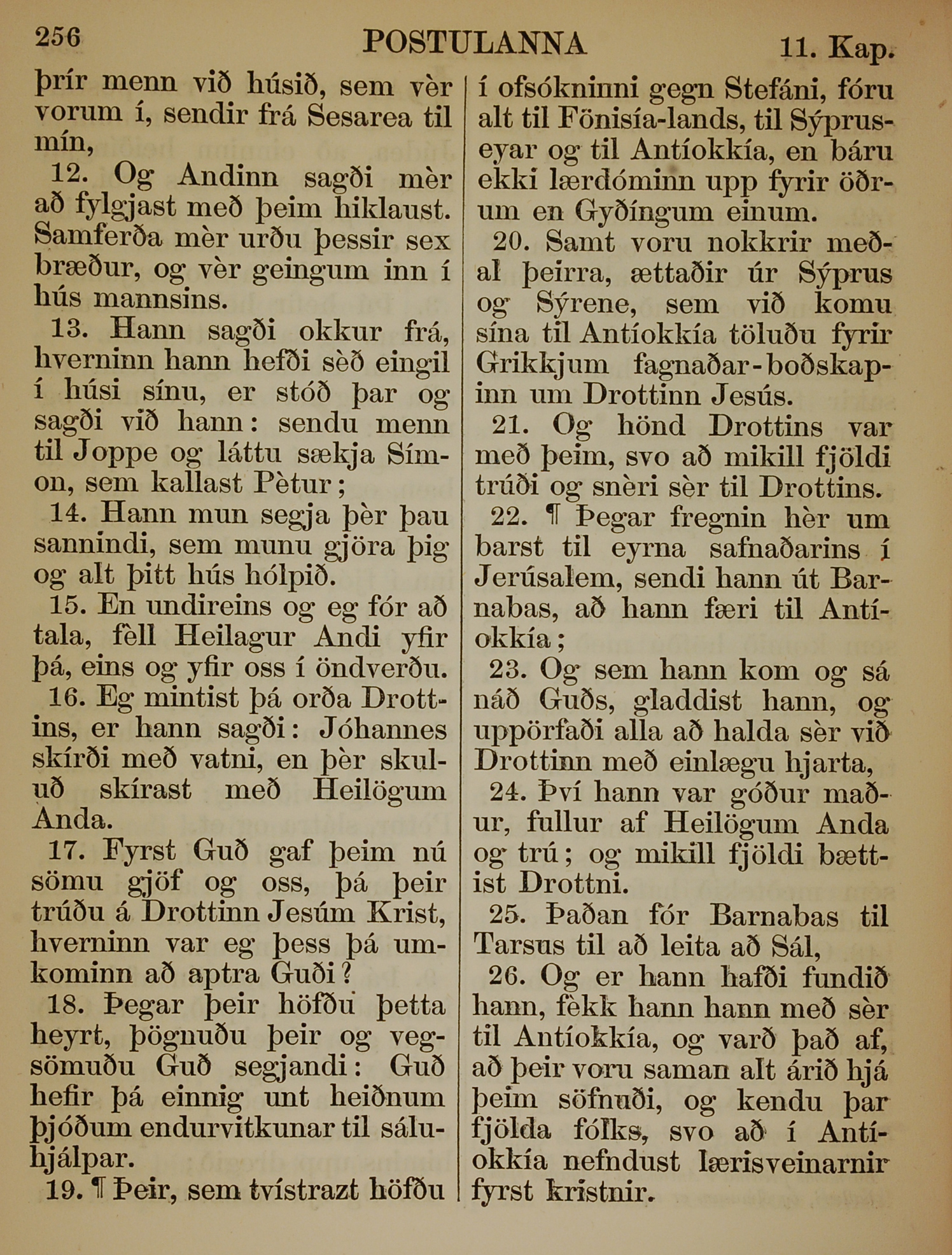 1863年冰島語新約全書 使徒行傳 11 章 12 節到 11 章 26 節