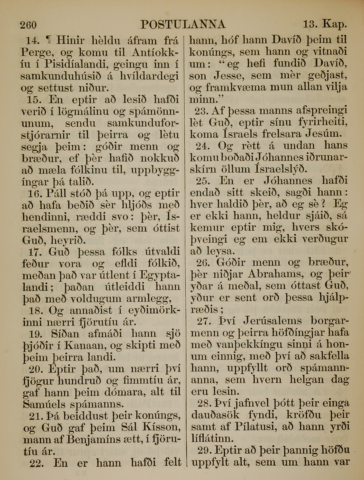 1863年冰島語新約全書 使徒行傳 13 章 14 節到 13 章 29 節