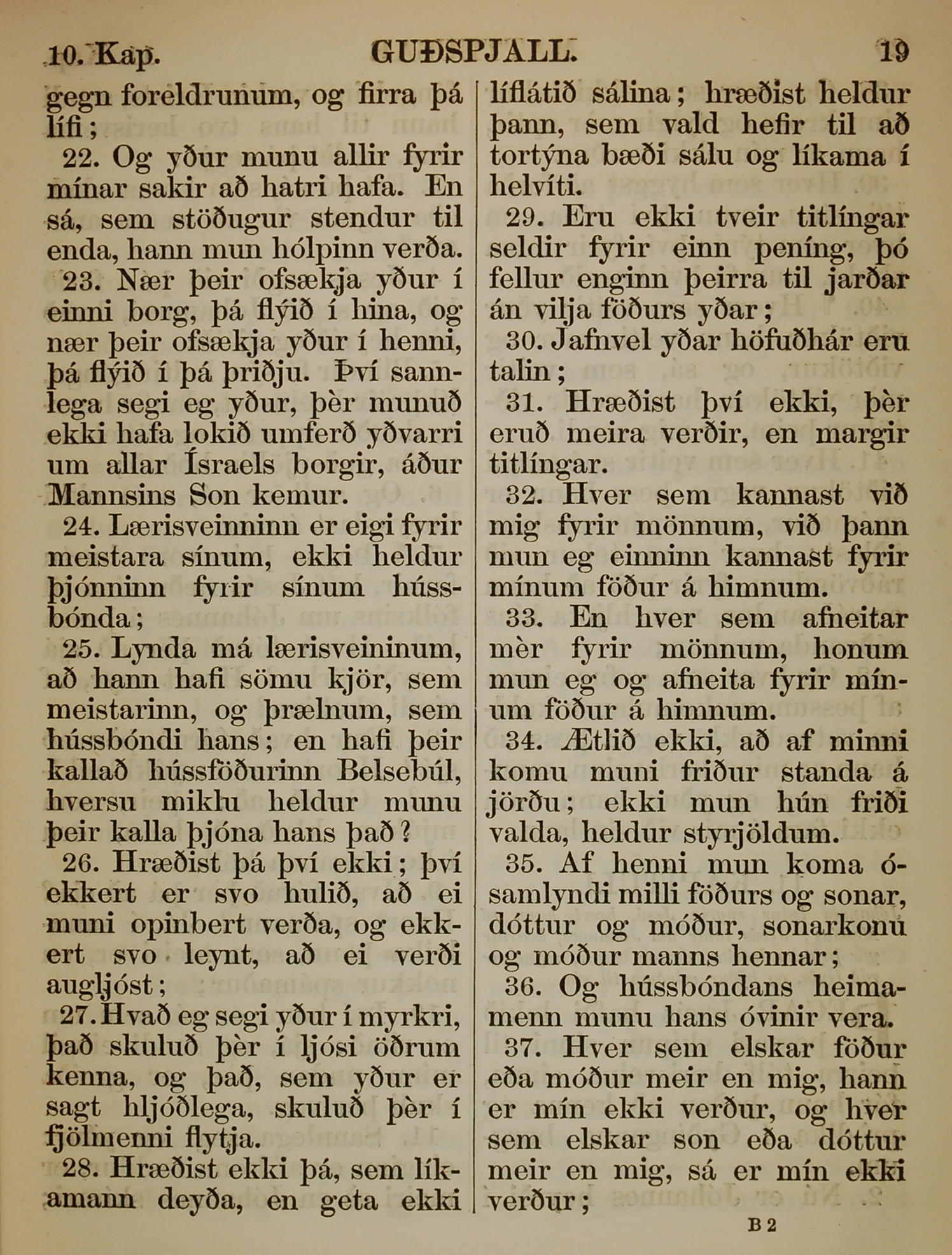 1863年冰島語新約全書 馬太福音 10 章 22 節到 10 章 37 節