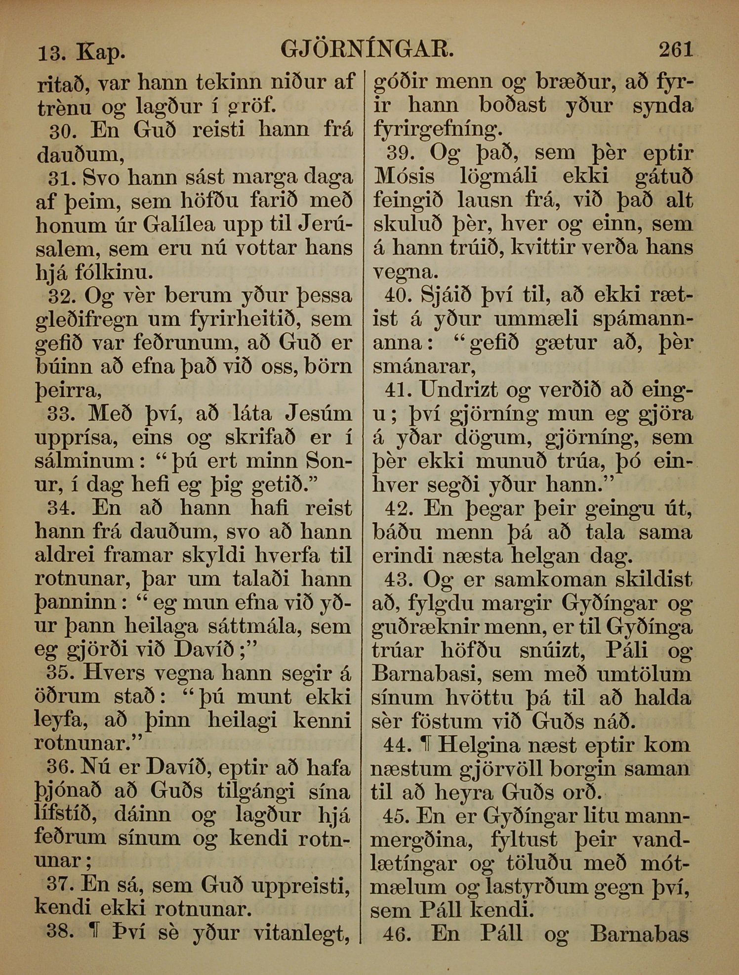 1863年冰島語新約全書 使徒行傳 13 章 30 節到 13 章 46 節
