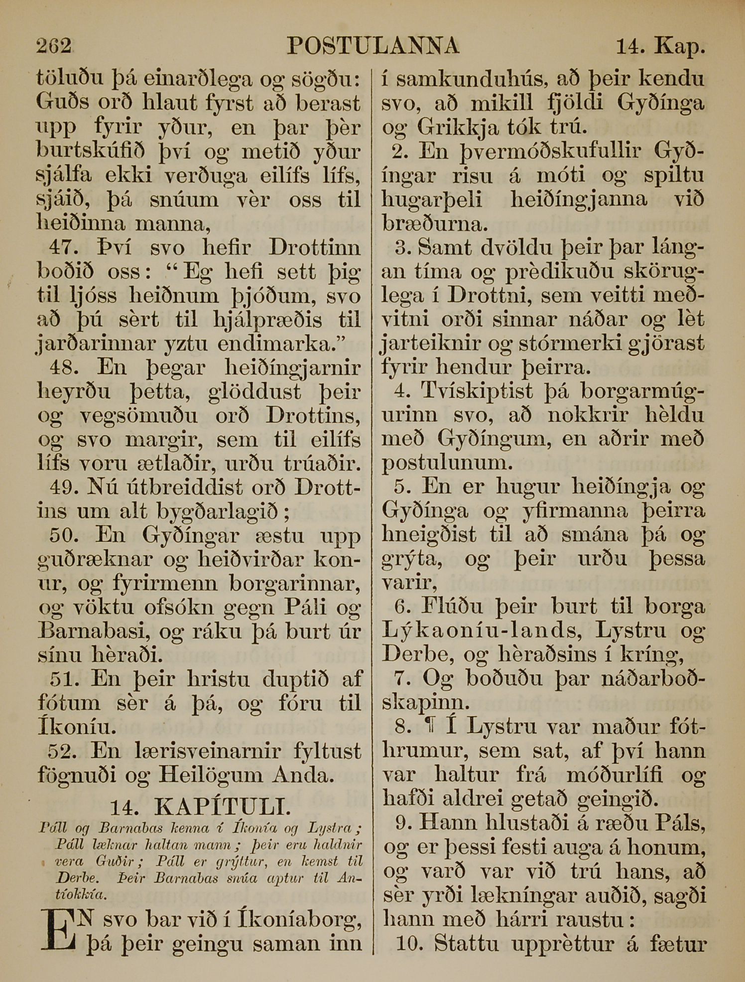 1863年冰島語新約全書 使徒行傳 13 章 47 節到 14 章 10 節