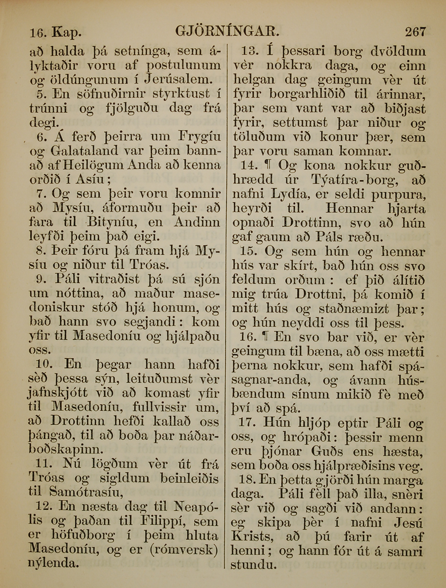 1863年冰島語新約全書 使徒行傳 16 章 5 節到 16 章 18 節