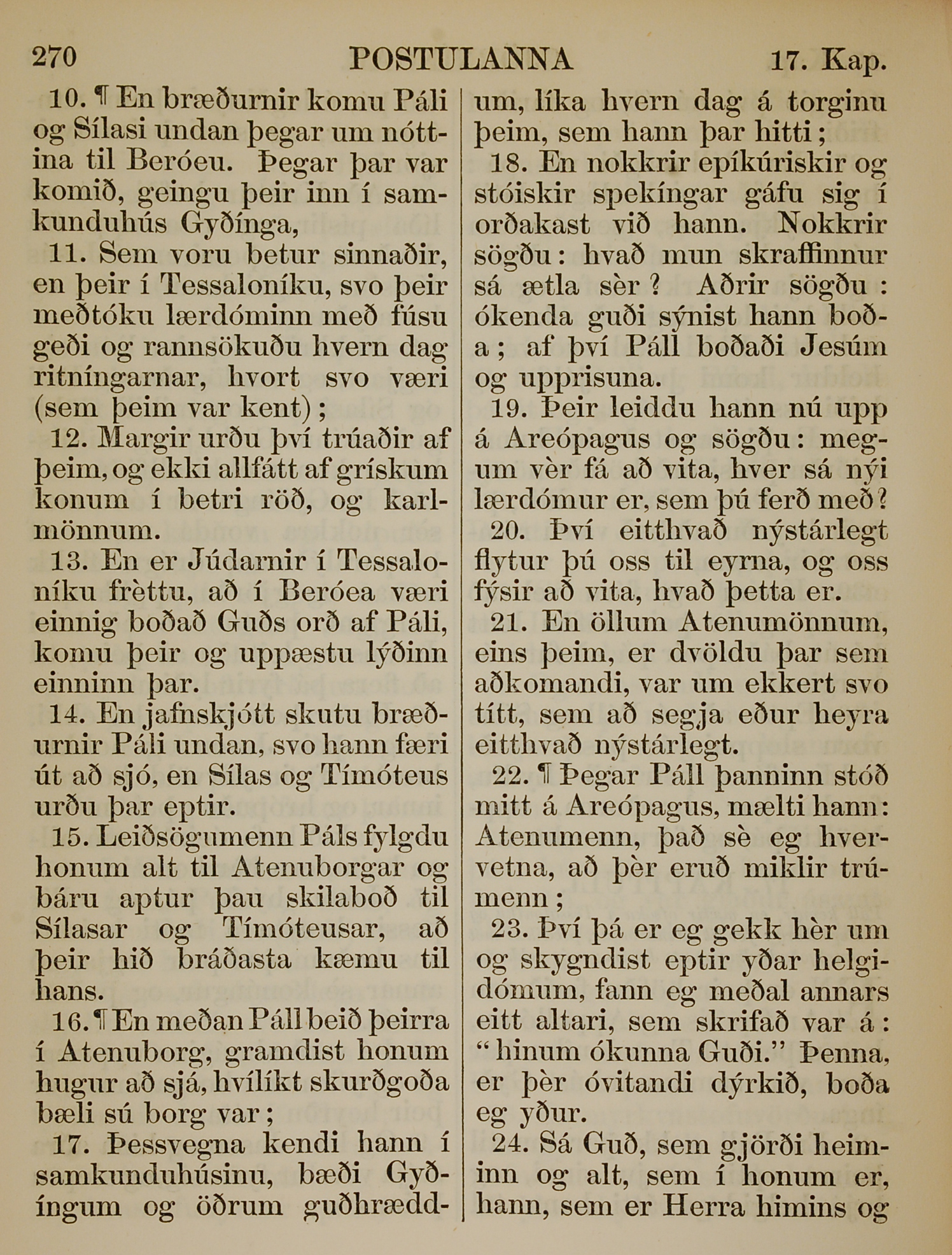 1863年冰島語新約全書 使徒行傳 17 章 10 節到 17 章 24 節