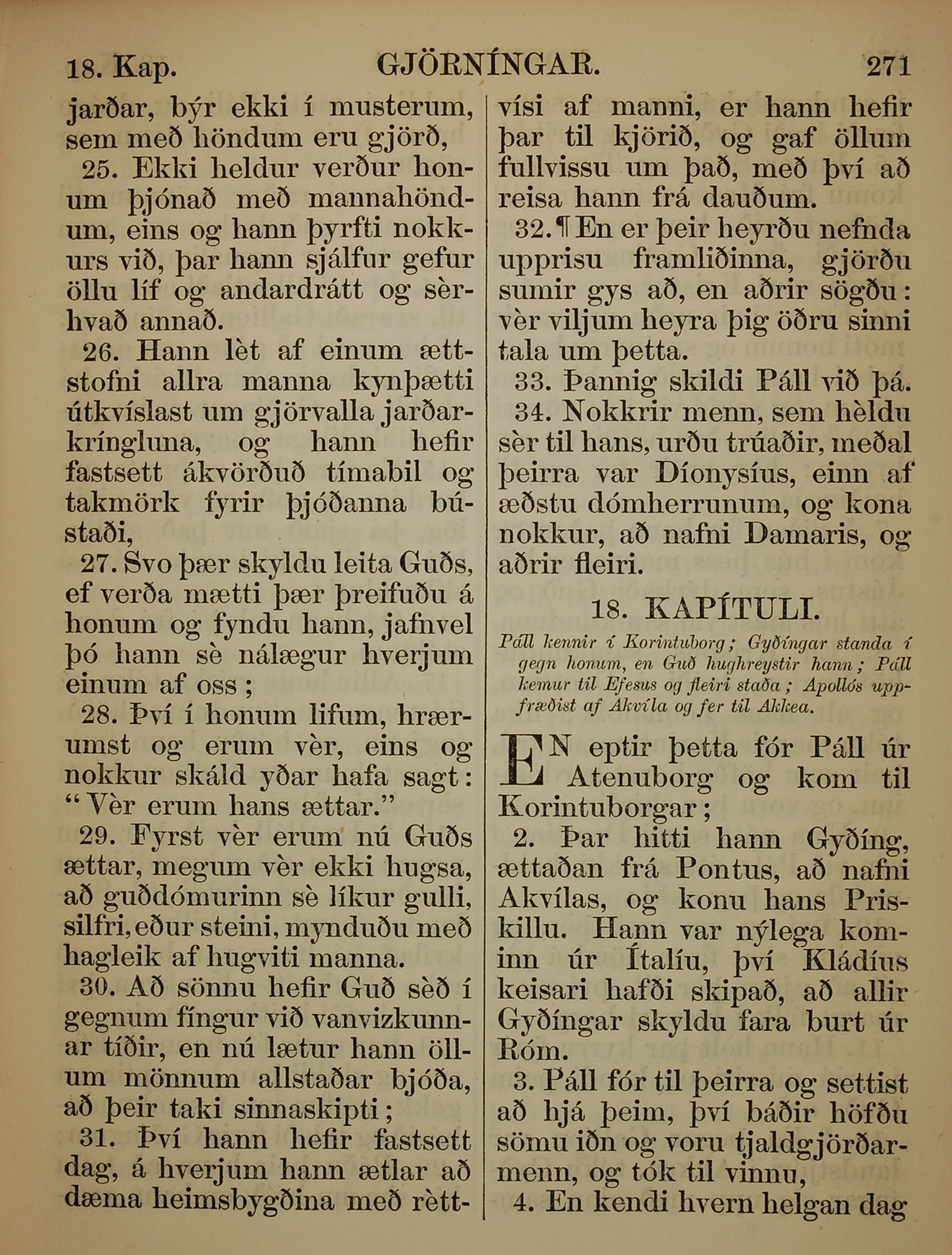 1863年冰島語新約全書 使徒行傳 17 章 25 節到 18 章 4 節