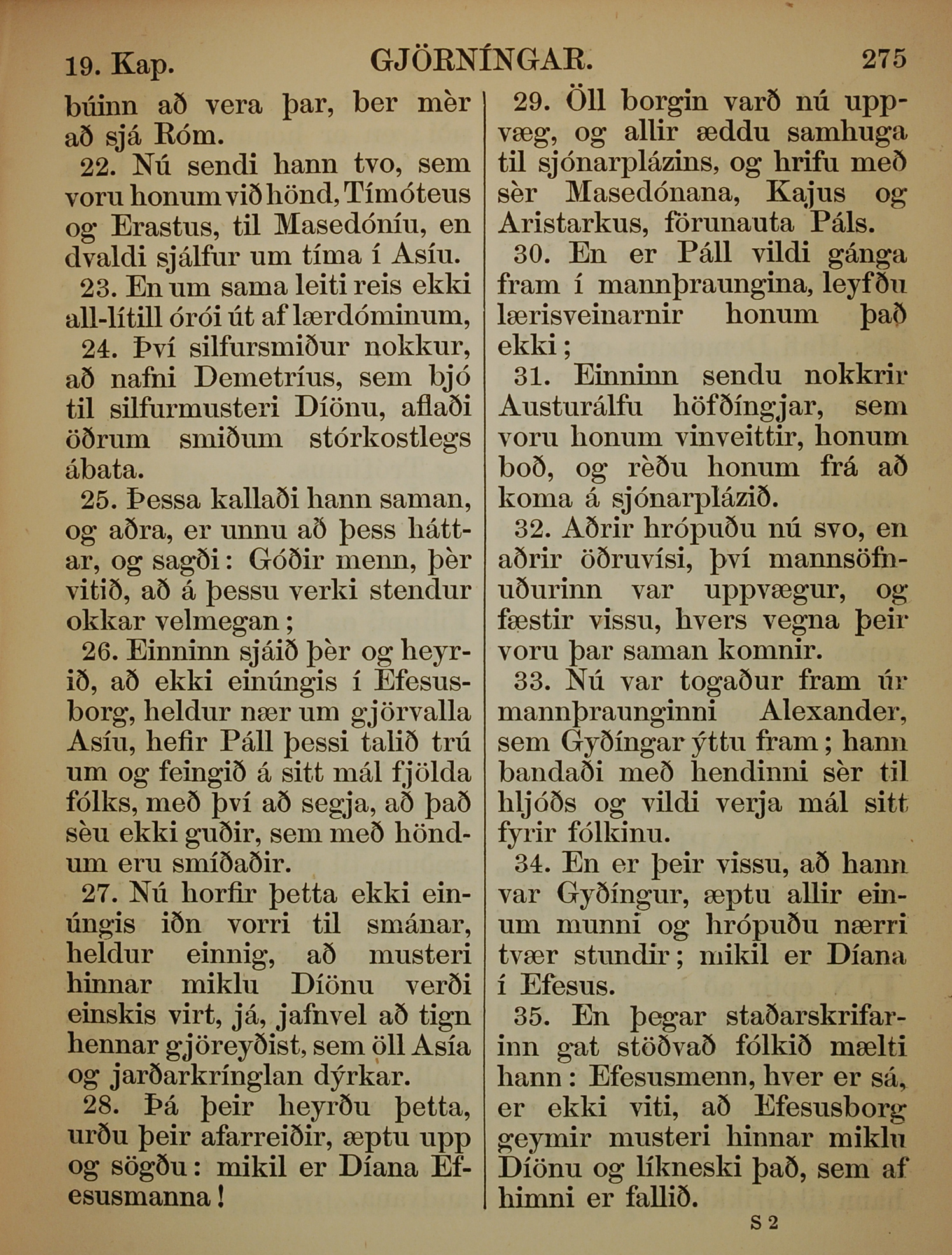 1863年冰島語新約全書 使徒行傳 19 章 22 節到 19 章 35 節