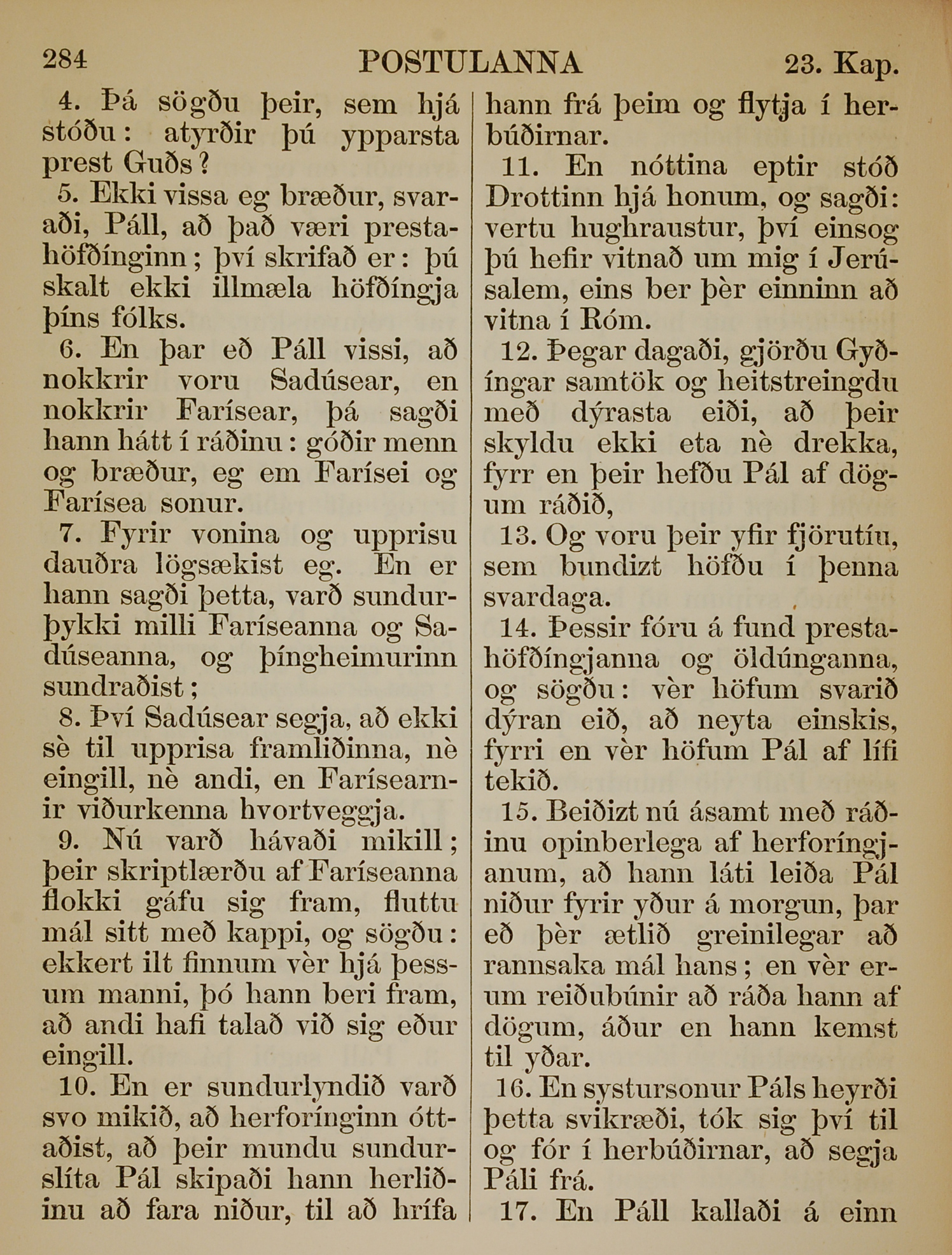1863年冰島語新約全書 使徒行傳 23 章 4 節到 23 章 17 節