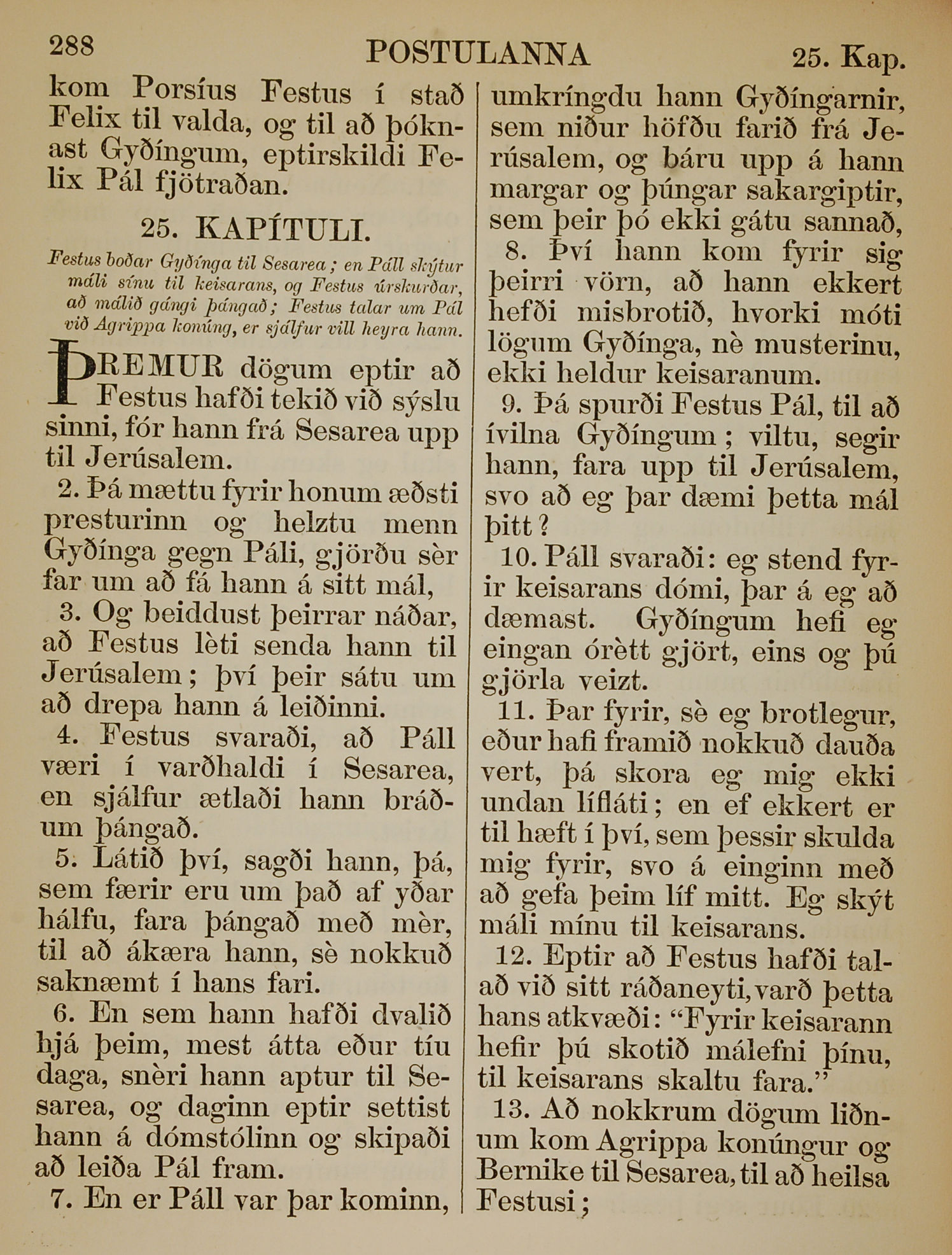 1863年冰島語新約全書 使徒行傳 25 章 1 節到 25 章 13 節