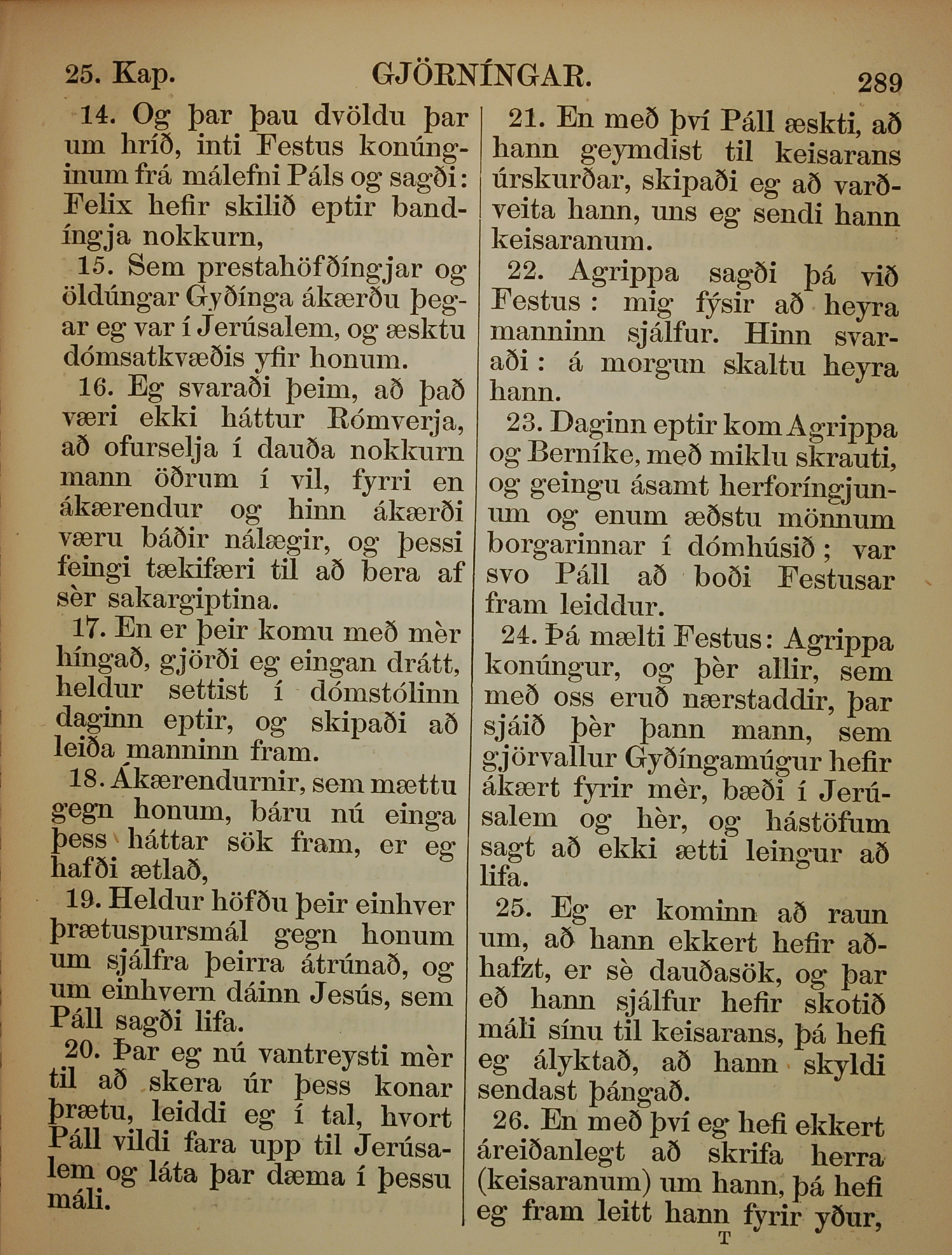 1863年冰島語新約全書 使徒行傳 25 章 14 節到 25 章 26 節