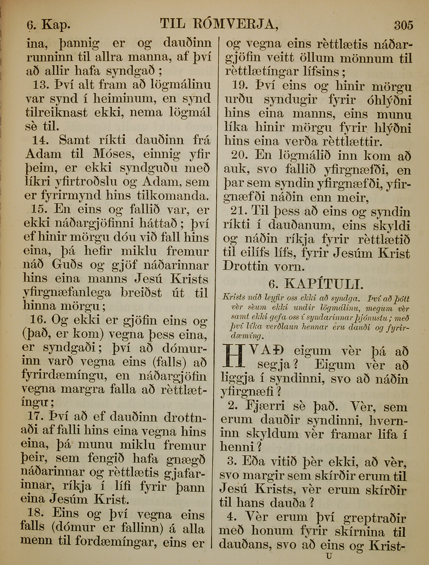 1863年冰島語新約全書 羅馬書 5 章 13 節到 6 章 4 節